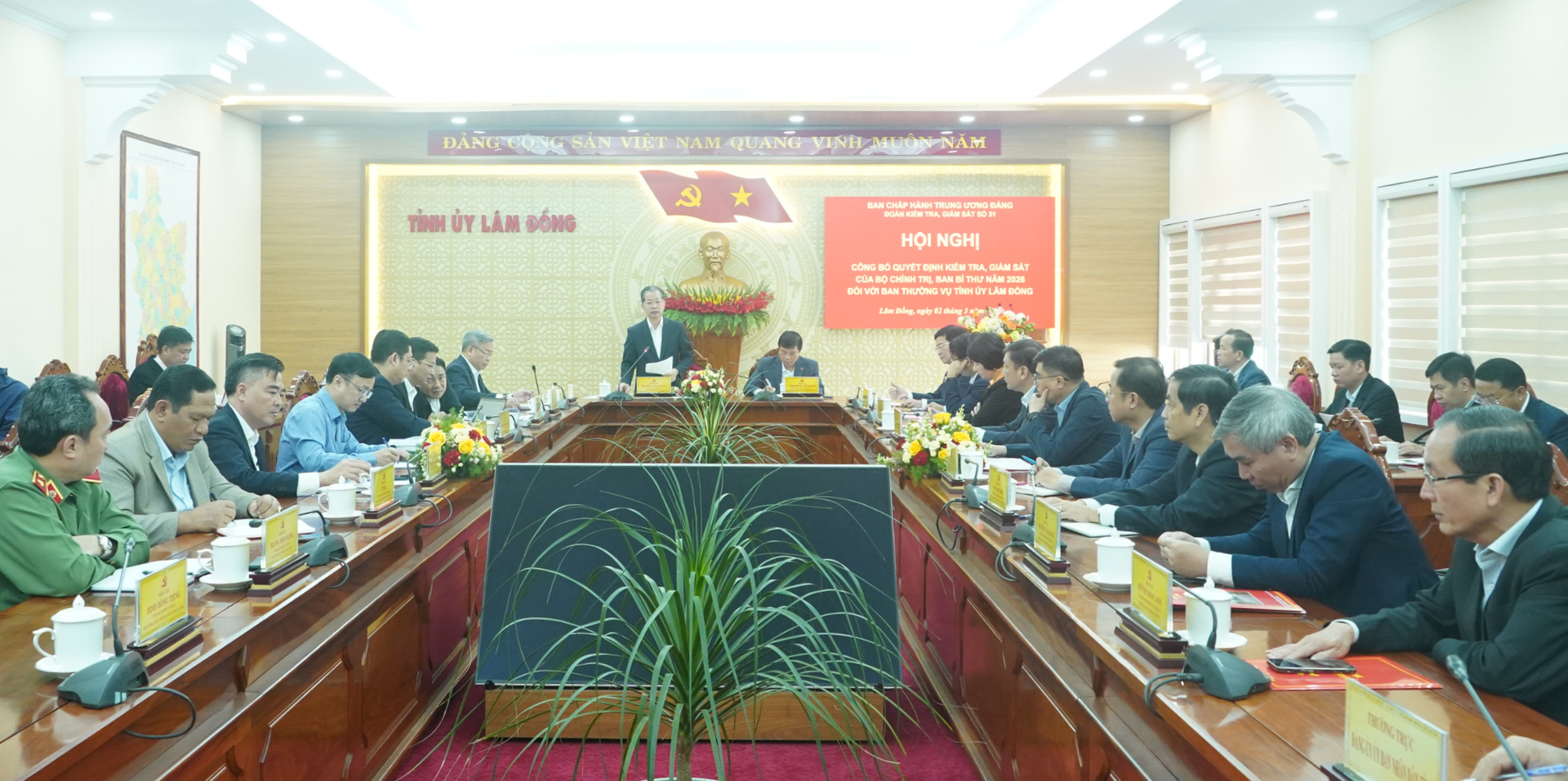Sáng 2/3, tại Tỉnh ủy Lâm Đồng, Đoàn kiểm tra, giám sát số 31 của Bộ Chính trị, Ban Bí thư do đồng chí Nguyễn Văn Quảng, Bí thư Trung ương Đảng, Bí thư Đảng ủy, Chánh án TANDTC làm Trưởng đoàn đã tổ chức công bố quyết định kiểm tra, giám sát của Bộ Chính trị, Ban Bí thư năm 2026 đối với Ban Thường vụ Tỉnh ủy Lâm Đồng.