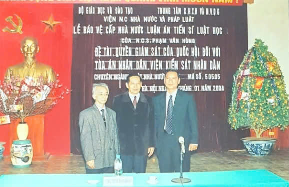 Buổi lễ bảo vệ luận án diễn ra suôn sẻ. Tôi còn nhớ, khi tôi chở ông Trịnh Hồng Dương bằng xe máy đến hội trường, cả Hội đồng ra bắt tay và nồng nhiệt đón tiếp vị khách mời đặc biệt là Chánh án TANDTC. Đây là điều rất hiếm có ở Viện Nhà nước và Pháp luật. Kết thúc buổi bảo vệ thành công, tôi chụp ảnh lưu niệm với các thầy trong Hội đồng, các thấy hướng dẫn, với lãnh đạo và đồng nghiệp ở Vụ Pháp luật và gia đình. Và tất nhiên có cả ảnh chụp lưu niệm với ông Trịnh Hồng Dương, một người thầy, một vị đại biểu Quốc hội luôn hết lòng vì sự nghiệp đào tạo thế hệ trẻ.