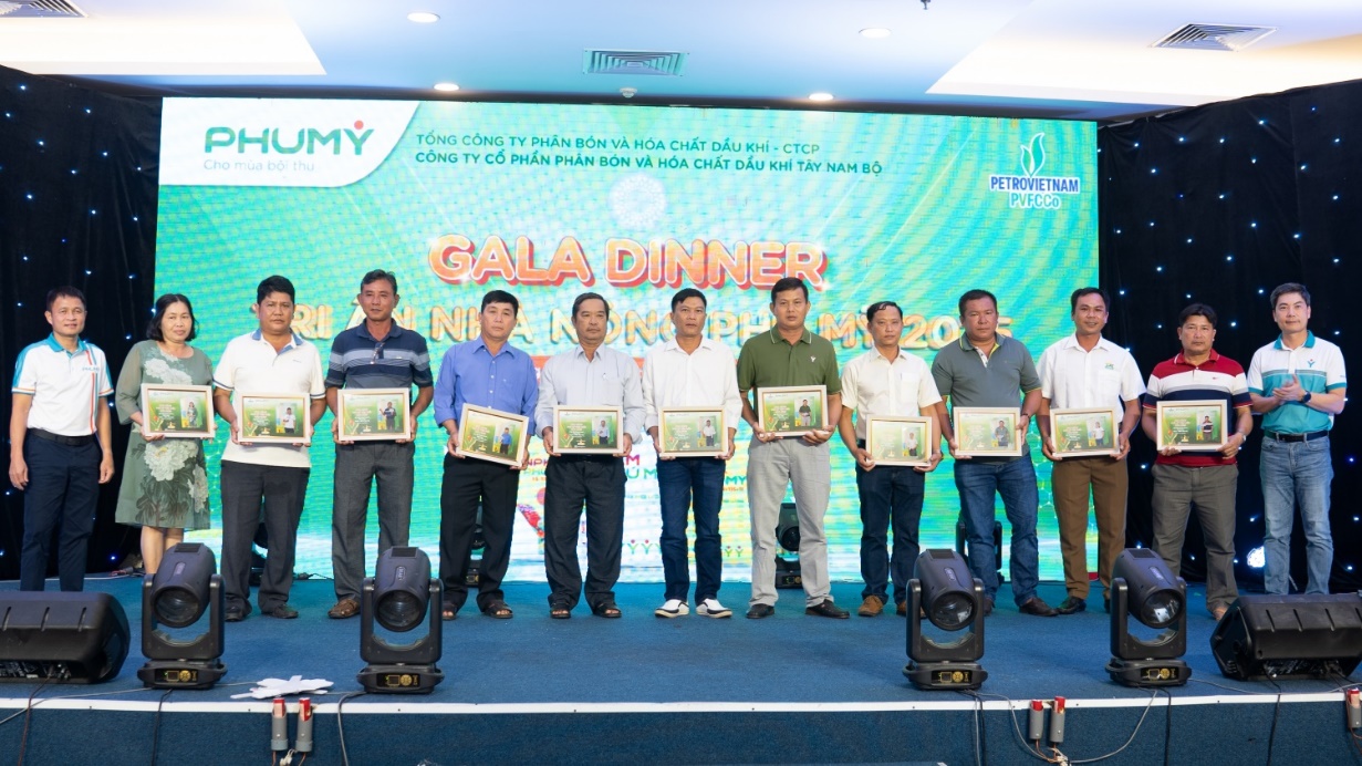 Tối cùng ngày, bà con nông dân tiếp tục được tham dự Chương trình Gala Dinner tại Vũng Tàu trong không khí thân mật, ấm áp và tràn đầy niềm vui. Các đại biểu và nông dân đã cùng giao lưu, chụp ảnh kỷ niệm, cùng khám phá tiện ích của Ứng dụng Phú Mỹ - ứng dụng mới trên điện thoại thông minh mà Phú Mỹ vừa triển khai cho các khách hàng là người sử dụng phân bón Phú Mỹ. Đặc biệt nhân kỷ niệm 95 năm ngày thành lập Hội nông dân Việt Nam, các phần quà tri ân có giá trị cũng được gửi đến khách hàng.