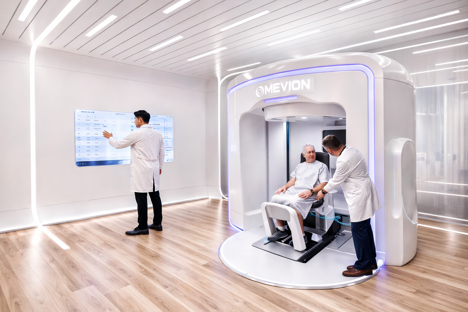 Máy còn tích hợp AI thế hệ mới nhất giúp mở ra cơ hội mới cho người bệnh ung thư có khối u nằm ở vị trí sâu, phức tạp, nhạy cảm (như ung thư đầu cổ, não, tủy sống, phổi, gan...); bảo vệ tối đa các mô lành và cơ quan quan trọng xung quanh (như tim, phổi, não bộ…) so với xạ trị tia X truyền thống, ít tác dụng phụ hơn. Đặc biệt, “Siêu máy xạ trị proton Mevion” giảm tối đa thời gian xạ trị, người bệnh có thể ngồi, nằm trong quá trình xạ trị với cảm giác an toàn, thoải mái, dễ chịu hơn.