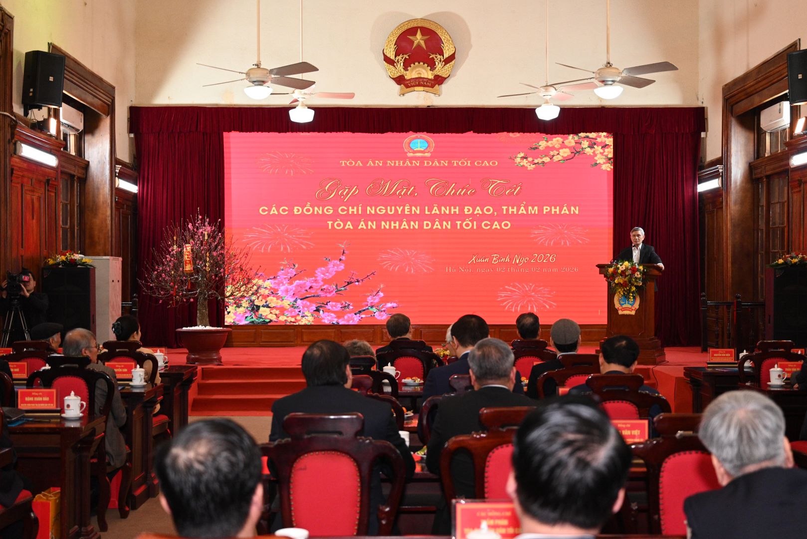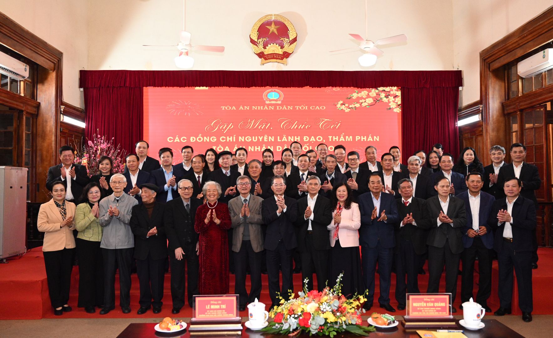 Thay mặt Đảng ủy và lãnh đạo Tòa án nhân dân tối cao, Chánh án Nguyễn Văn Quảng gửi lời chúc mừng năm mới tới các đồng chí nguyên lãnh đạo, Thẩm phán Tòa án nhân dân tối cao cùng gia đình dồi dào sức khỏe, hạnh phúc, mong muốn các đồng chí tiếp tục quan tâm, theo dõi, đóng góp ý kiến bằng kinh nghiệm, tâm huyết của mình để góp phần xây dựng và phát triển hệ thống Tòa án ngày càng vững mạnh, đáp ứng yêu cầu của Đảng, Nhà nước và kỳ vọng của Nhân dân.