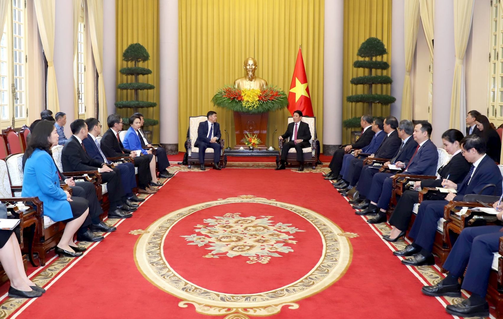 Chủ tịch nước Lương Cường và Chánh án TATC Mông Cổ Ganzorig Damdin cùng các đại biểu tại buổi tiếp