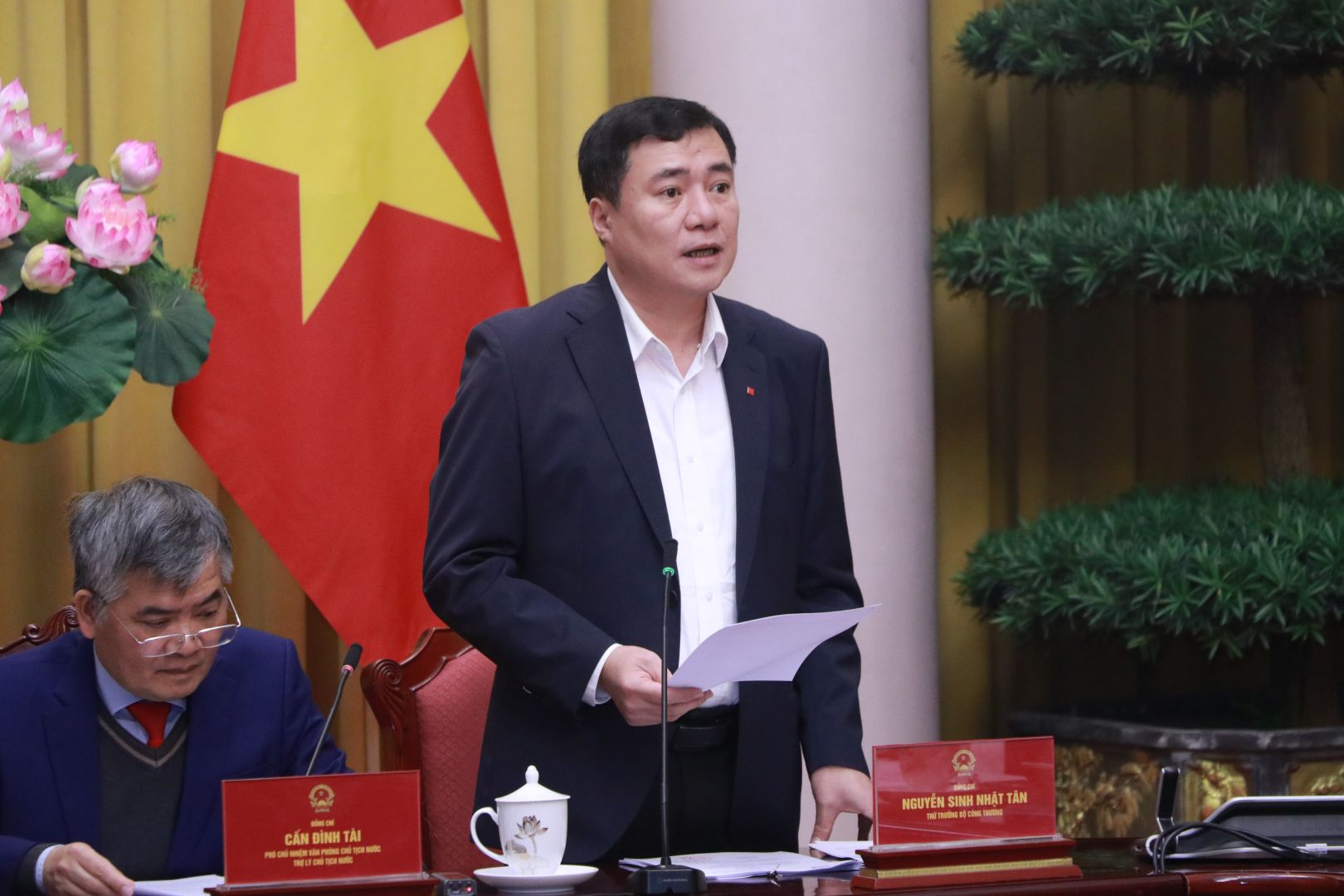 Phó Chủ nhiệm Văn phòng Chủ tịch nước, Trợ lý Chủ tịch nước Cấn Đình Tài, chủ trì họp báo.