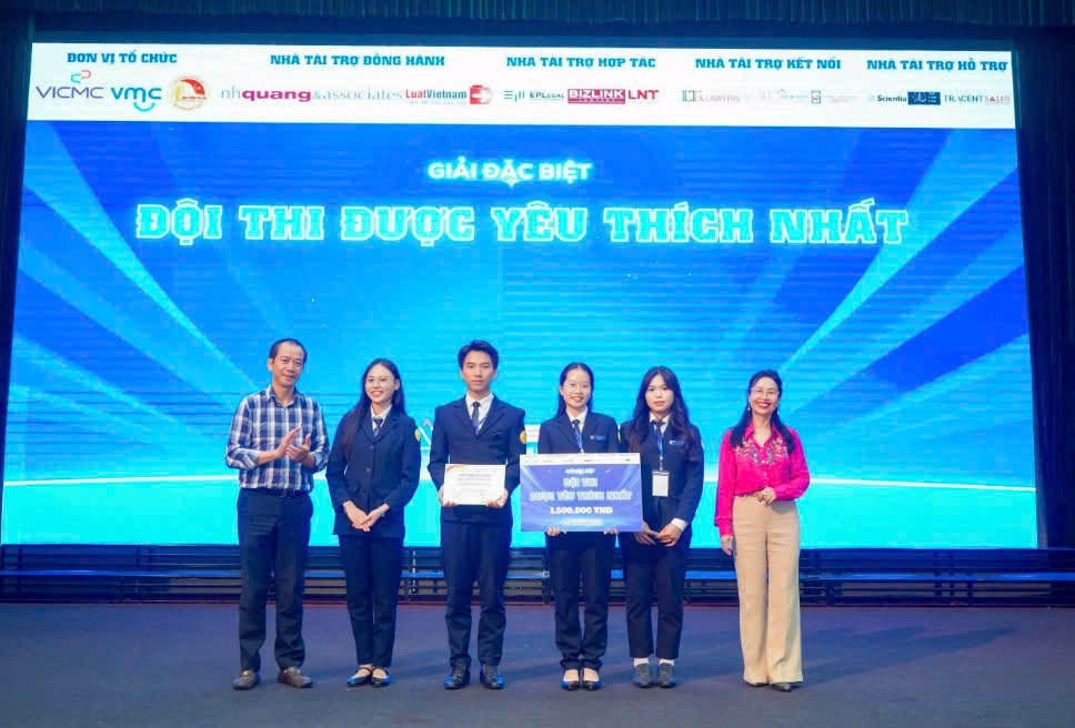 Nhà tài trợ và Ban giám khảo trao giải thưởng cho Đội Không Law Lắng – Học viện Toà án đạt giải Đội được yêu thích nhất.