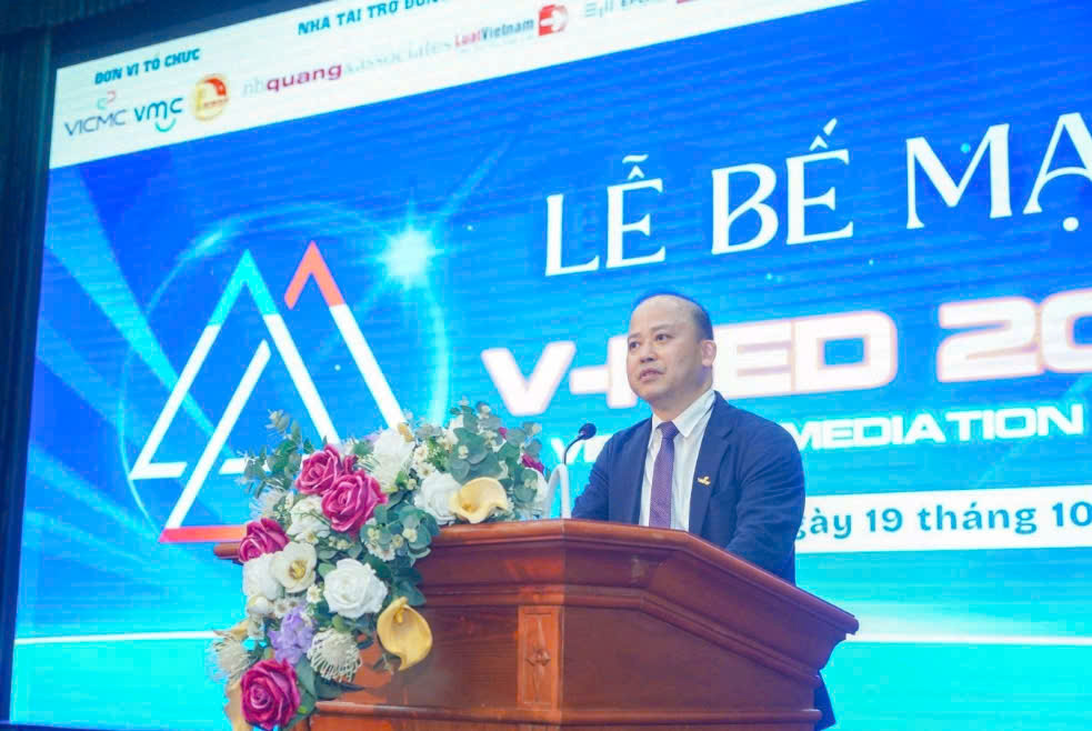 Luật sư Nguyễn Hưng Quang – Chủ tịch Trung tâm Hoà giải Thương mại Quốc tế Việt Nam (VICMC) bày tỏ lời chúc mừng thành công của Cuộc thi Hòa giải thương mại Việt Nam (V-MED) 2025 và ghi nhận nỗ lực, đóng góp của Ban Tổ chức, giám khảo, các trung tâm hòa giải và Học viện Tòa án trong việc tạo dựng một sân chơi học thuật ý nghĩa, thúc đẩy tinh thần nhân văn, tính chuyên nghiệp trong hành nghề luật và khuyến khích sinh viên lan tỏa giá trị của hòa giải, đóng góp trở lại cho các thế hệ học viên tiếp theo.