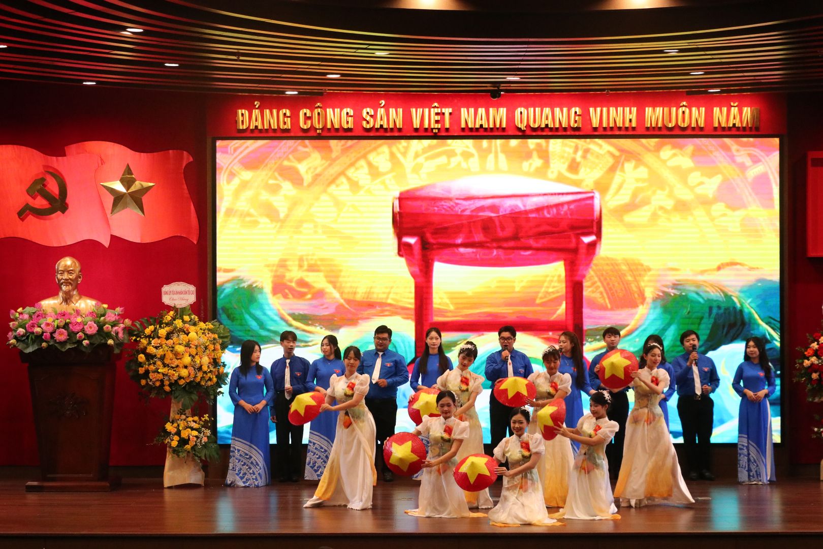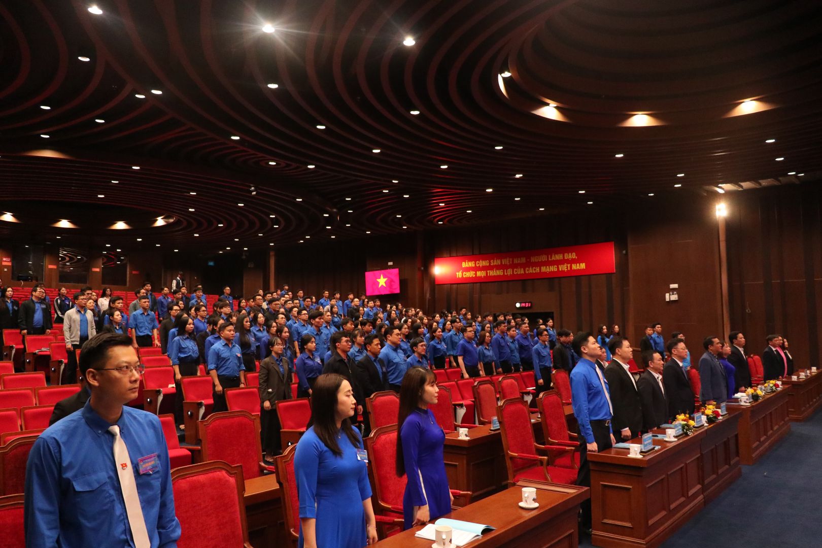Các đại biểu thực hiện nghi thức lễ trào cờ.