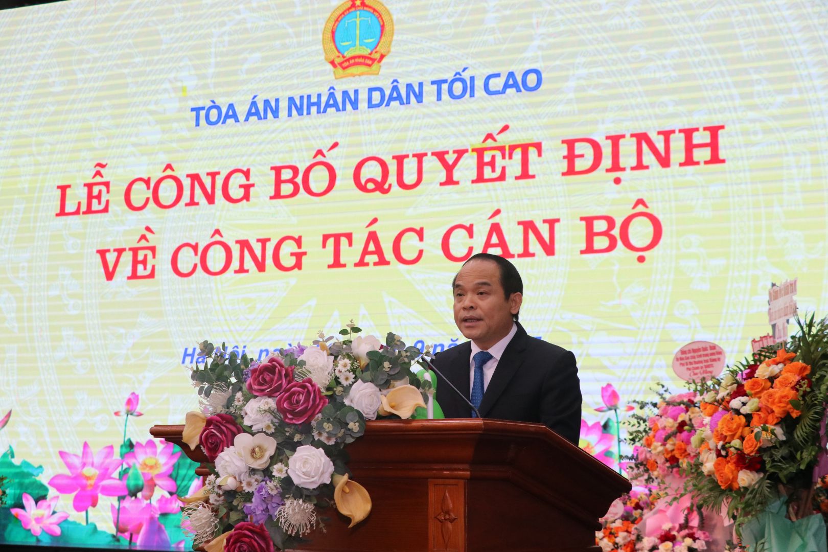 Phó Chánh án TANDTC Nguyễn Quốc Đoàn phát biểu tại Lễ công bố.