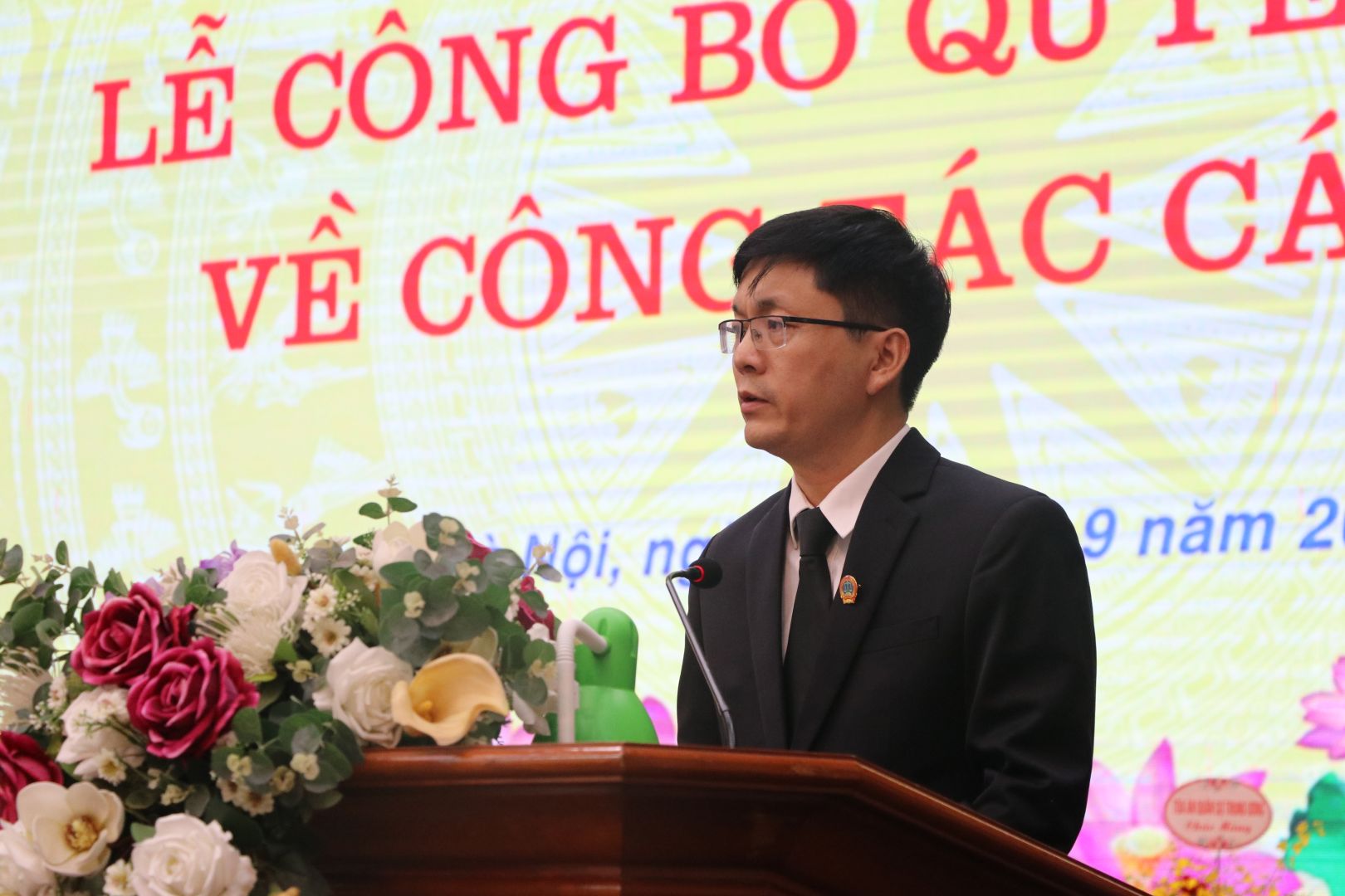 Tại buổi lễ, đồng chí Đào Tú Hoa, Phó Vụ trưởng Vụ Tổ chức - Cán bộ TANDTC đã công bố Quyết định của Chánh án TANDTC về việc điều động và bổ nhiệm đồng chí Nguyễn Văn Nam, Thẩm tra viên, Thư ký Phó Chánh án TANDTC giữ chức vụ Phó Giám đốc HVTA. Thời gian bổ nhiệm là 5 năm, kể từ ngày 01/10/2025.