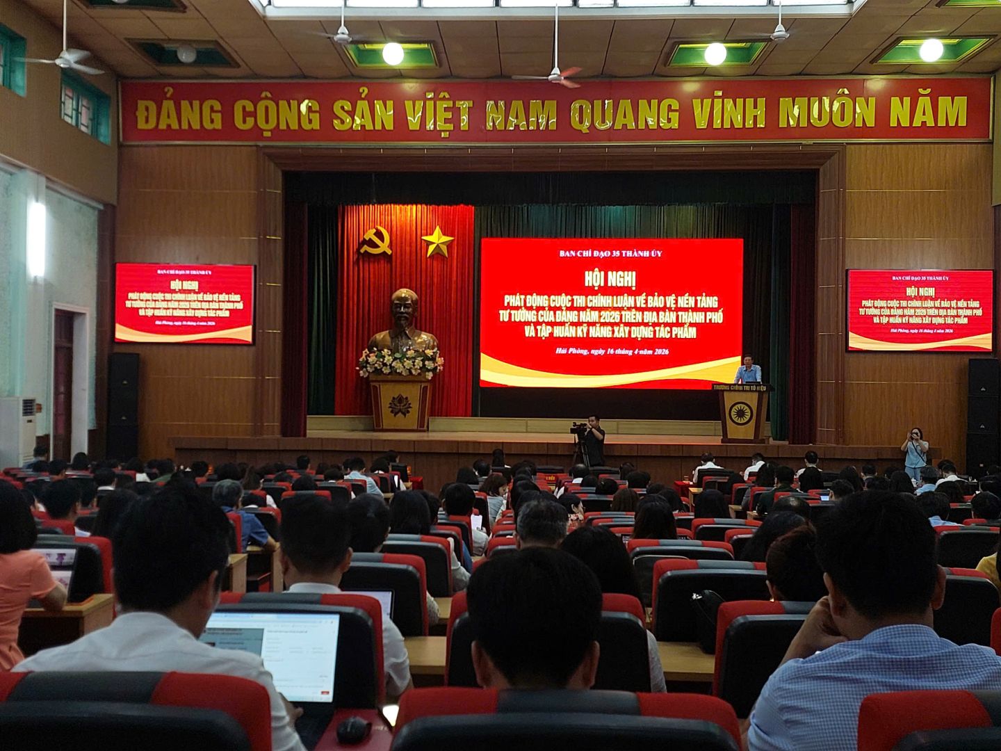 Sáng 16/4, Ban Chỉ đạo 35 Thành ủy TP. Hải Phòng tổ chức hội nghị phát động cuộc thi chính luận về bảo vệ nền tảng tư tưởng của Đảng năm 2026, đồng thời tập huấn kỹ năng xây dựng tác phẩm dự thi cho các lực lượng tham gia trên địa bàn.