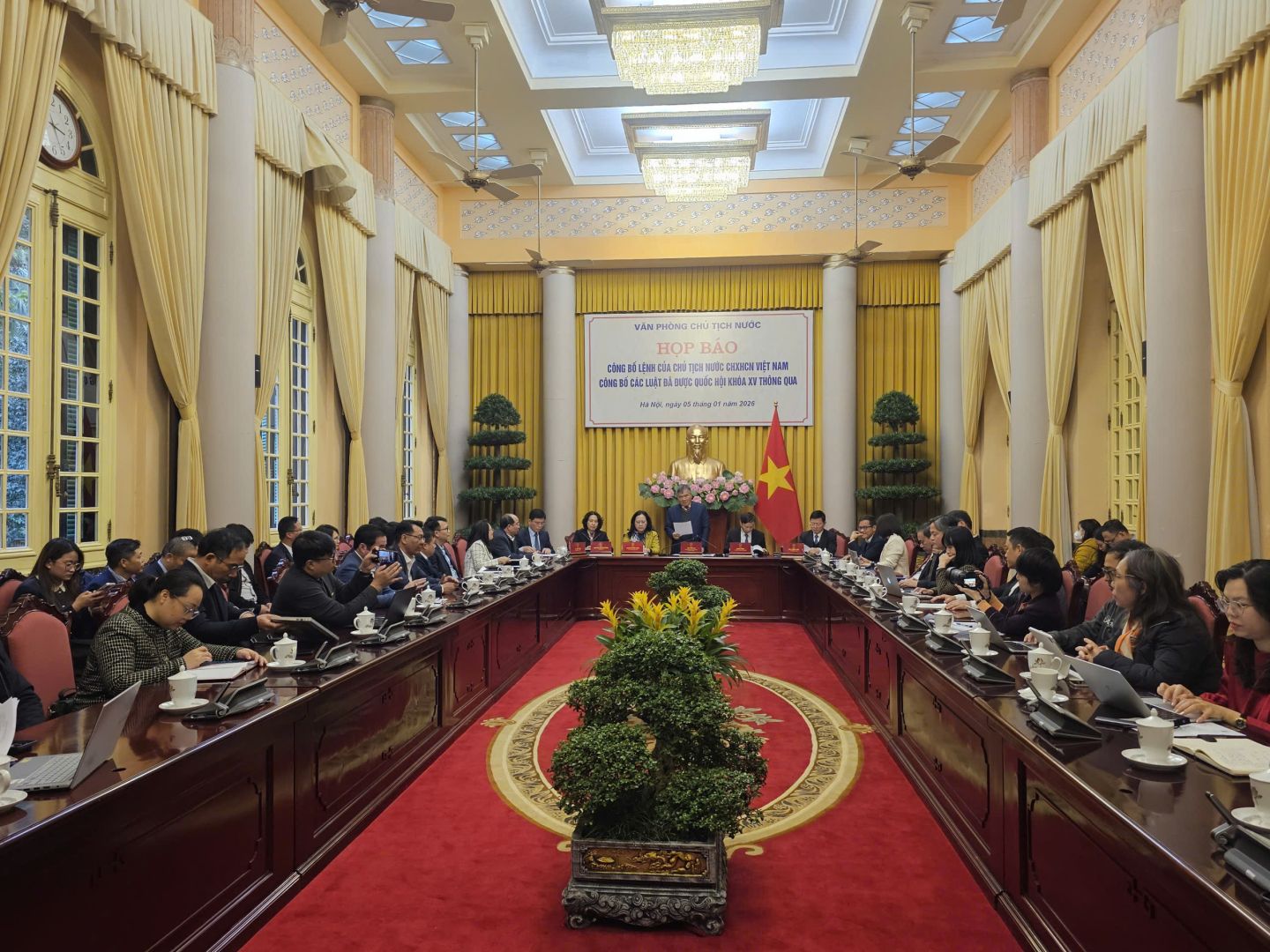 (TCTA) - Chiều 05/01/2026, tại Phủ Chủ tịch, Văn phòng Chủ tịch nước tổ chức họp báo công bố Lệnh của Chủ tịch nước công bố 13 luật đã được...