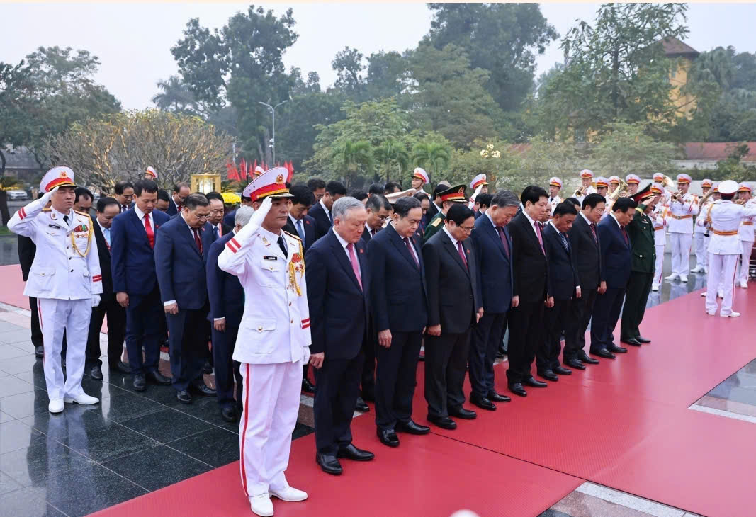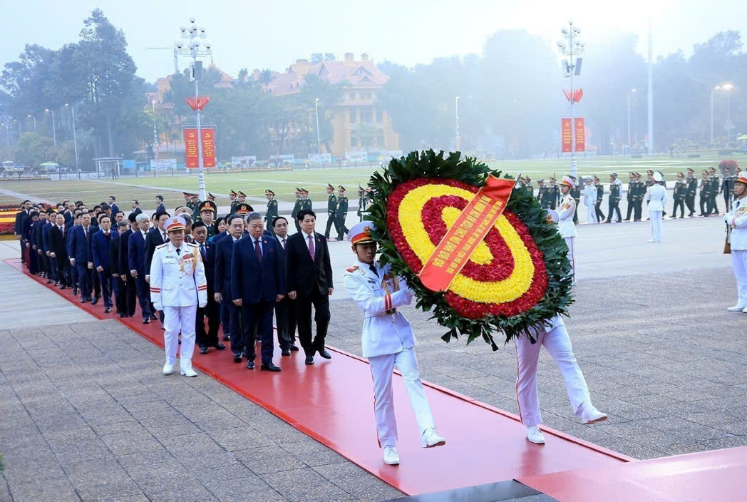 Đoàn đại biểu lãnh đạo Đảng, Nhà nước do Tổng Bí thư Tô Lâm dẫn đầu đến đặt vòng hoa tại Đài tưởng niệm các Anh hùng liệt sĩ trên đường Bắc Sơn (Ba Đình, Hà Nội). Ảnh: TTXVN