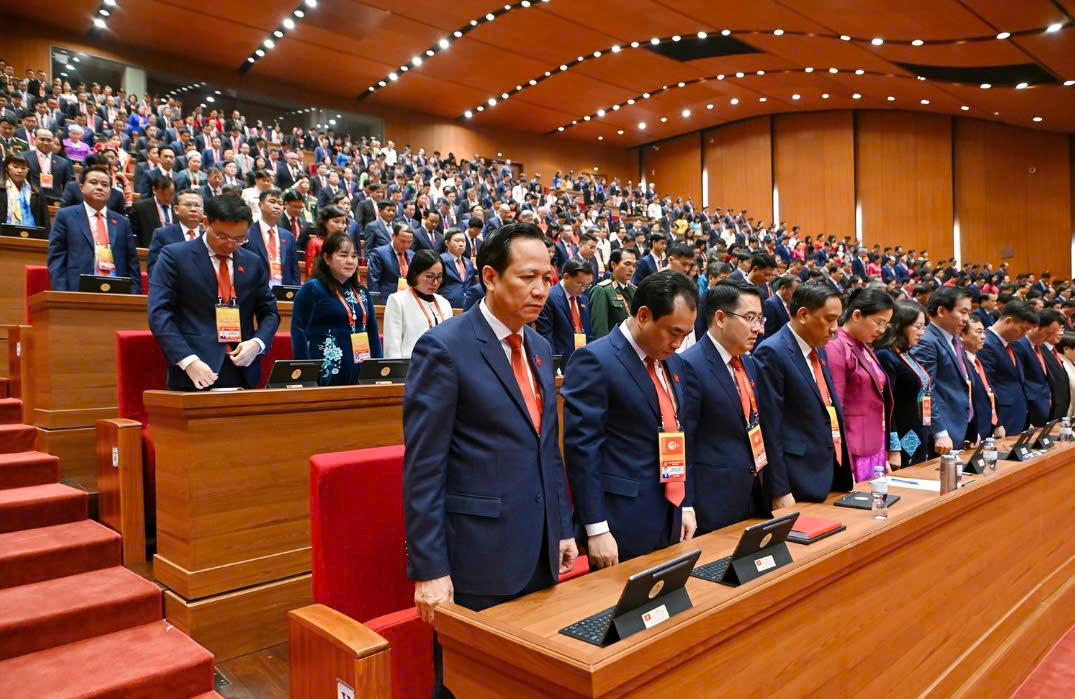 Đại hội dành một phút mặc niệm đồng chí cố Tổng Bí thư Nguyễn Phú Trọng và các đồng chí Ủy viên Trung ương Đảng đã mất trong nhiệm kỳ Đại hội XIII.