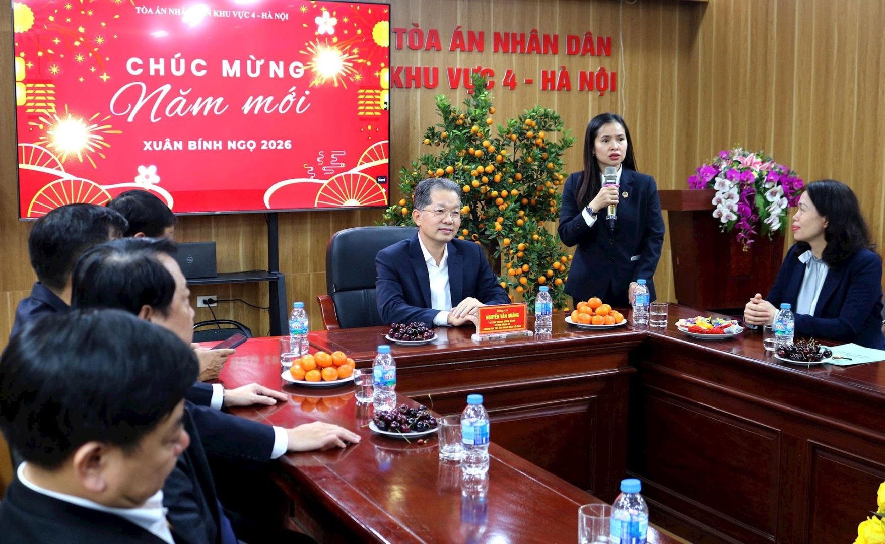 Trước đó, Chánh án Nguyễn Văn Quảng đã đến thăm, chúc Tết tập thể lãnh đạo, Thẩm phán, cán bộ, công chức và người lao động TAND khu vực 4 - Hà Nội.
