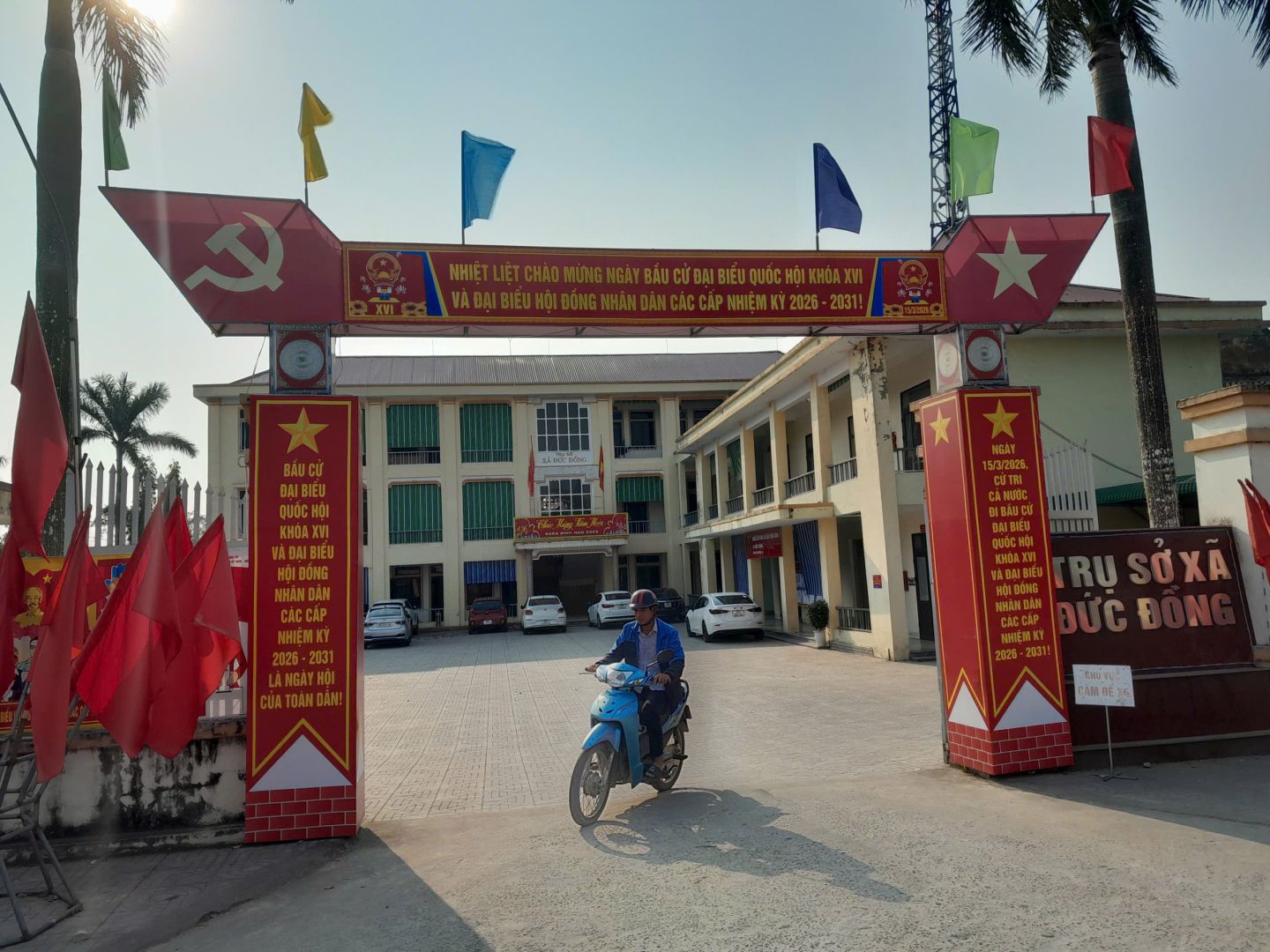 Trụ sở UBND xã Đức Đồng rực rỡ cờ hoa chào mừng cuộc bầu cử đại biểu Quốc hội và HĐND các cấp nhiệm kỳ 2026–2031 (Ảnh: Quang Thành)