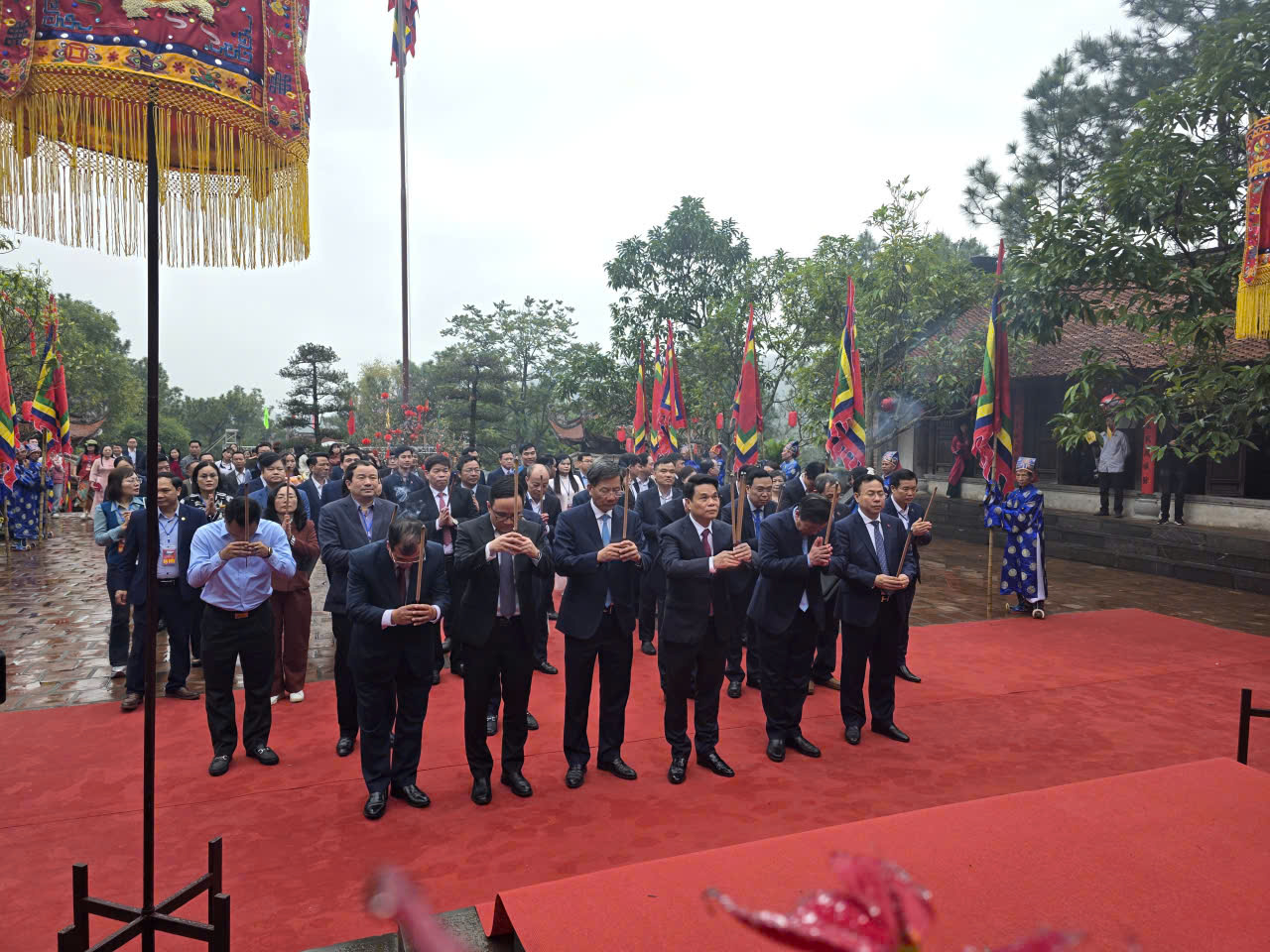 Các đại biểu thành kính dâng hương tri ân công đức "Vạn thế sư biểu" Chu Văn An.