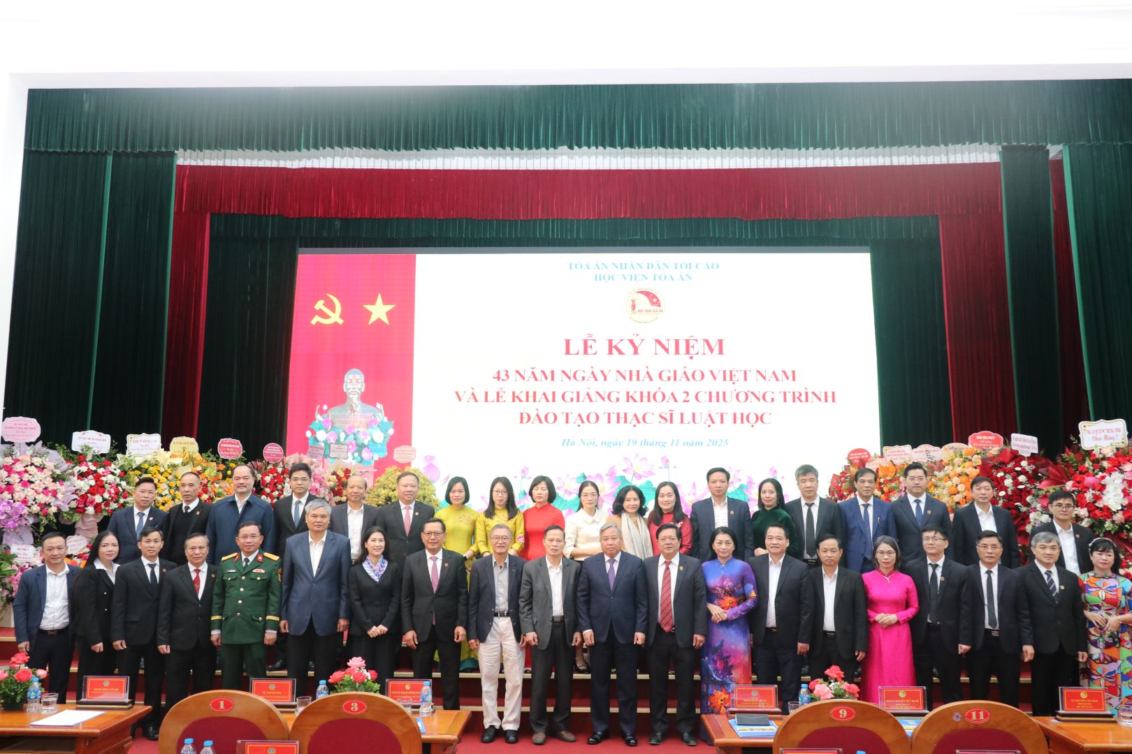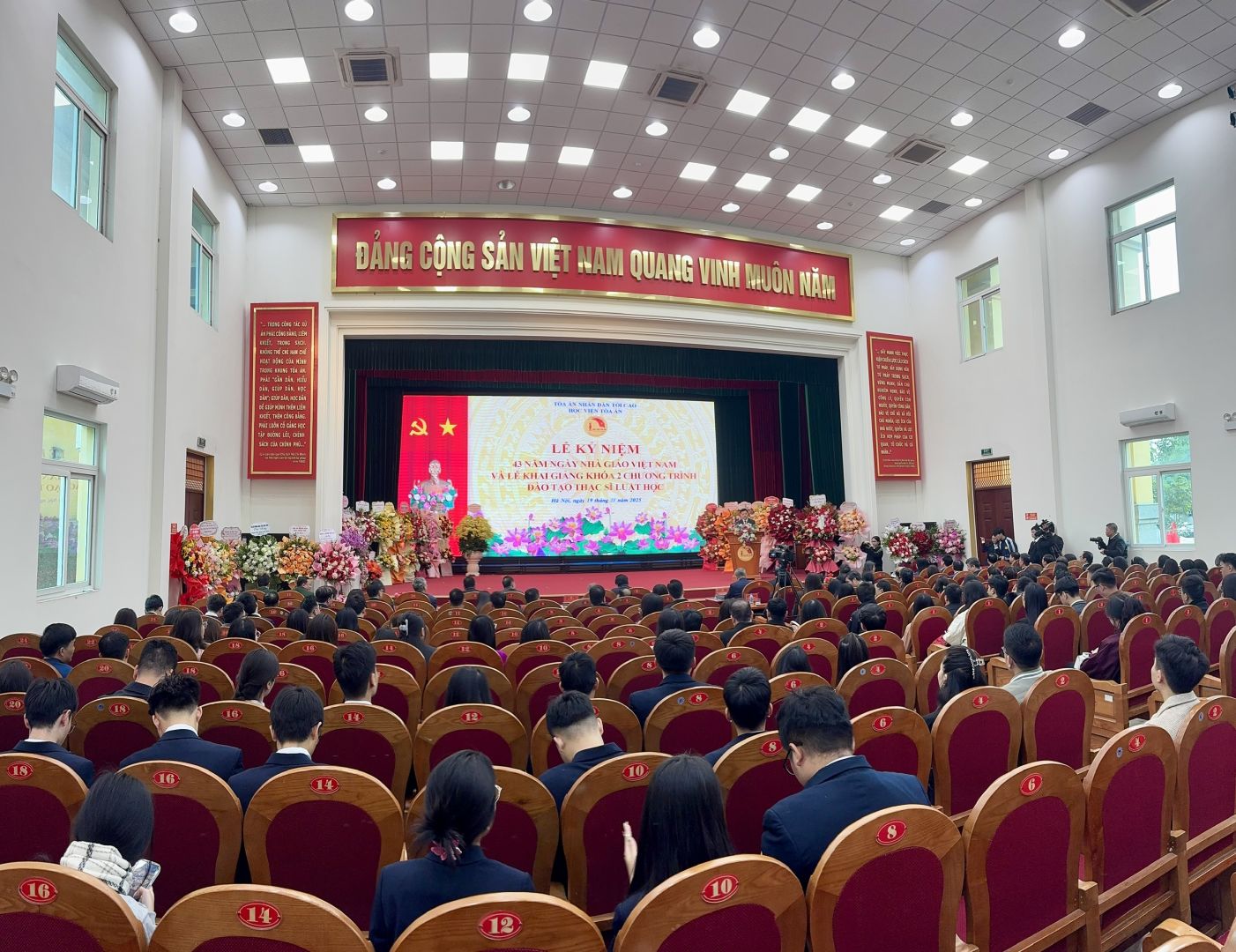 Cũng nhân dịp này, bên cạnh tổ chức Lễ kỷ niệm 43 năm ngày Nhà giáo Việt nam, HVTA đồng thời tổ chức Khai giảng Khóa 2 Chương trình đào tạo Thạc sĩ, đây là điều kiện để Học viện hướng tới tổ chức đào tạo trình độ Tiến sĩ ngành Luật trong thời gian tới.