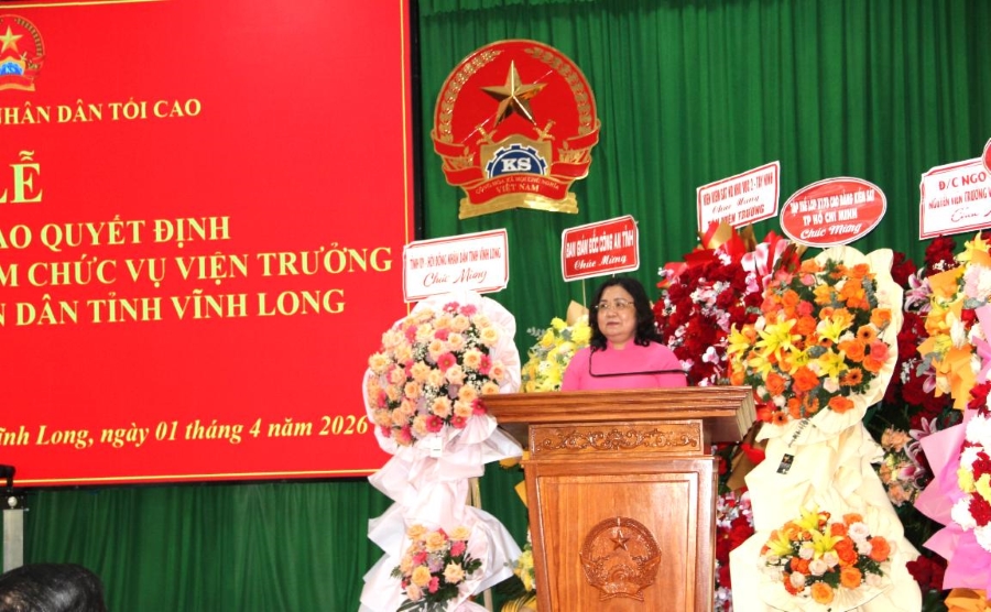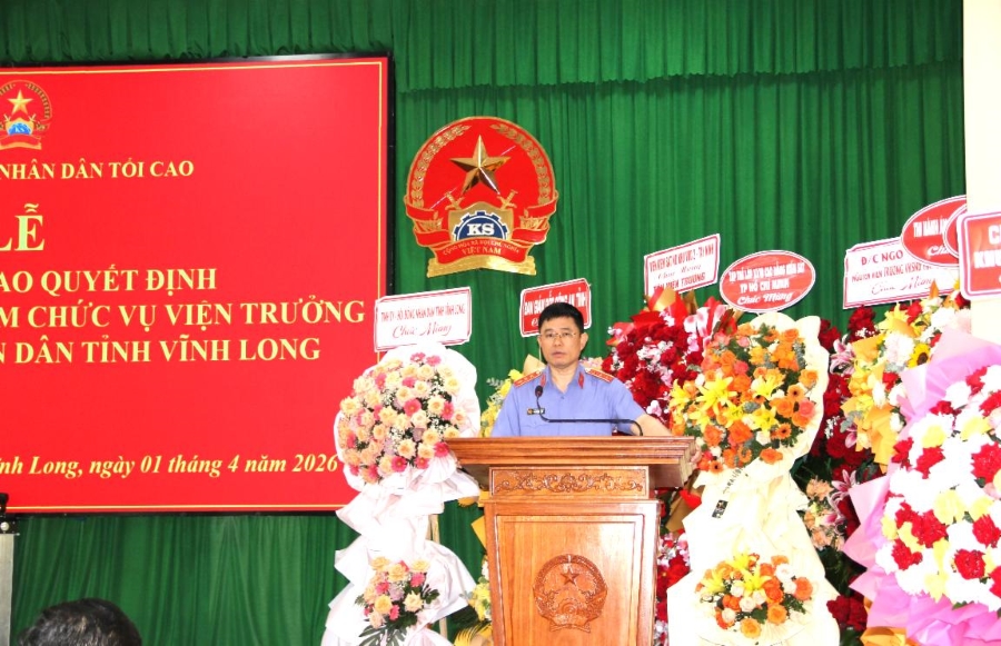 Tại buổi lễ, ông Nguyễn Văn Thắng, Phó Vụ trưởng Vụ Tổ chức cán bộ VKSND tối cao đã công bố Quyết định số 11/QĐ-VKSTC ngày 30/3/2026 của Viện trưởng VKSND tối cao. Theo đó, ông Nguyễn Hoàng Dũng, Kiểm sát viên trung cấp, Phó Viện trưởng VKSND tỉnh Tây Ninh được điều động, bổ nhiệm giữ chức vụ Viện trưởng VKSND tỉnh Vĩnh Long kể từ ngày 01/4/2026.