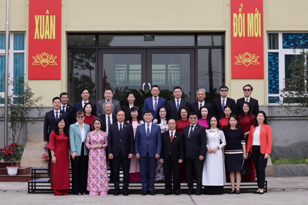 Đoàn đại biểu Tòa án tối cao Mông Cổ chụp ảnh lưu niệm với Phó Chánh án Tòa án nhân dân tối cao Lê Tiến và tập thể Ban Giám đốc, cán bộ, giảng viên Học viện Tòa án.