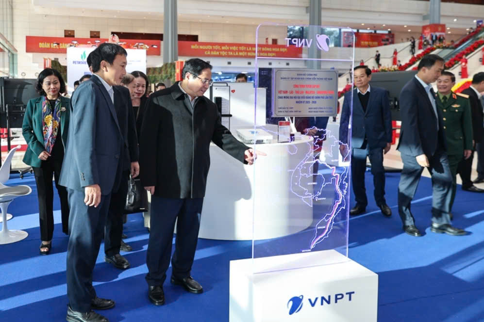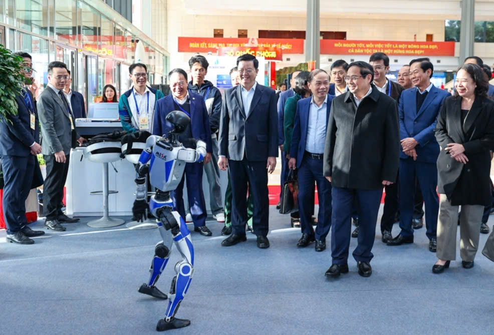 Thủ tướng Phạm Minh Chính kiểm tra khu trưng bày các sản phẩm khoa học công nghệ - Ảnh: VGP/Nhật Bắc