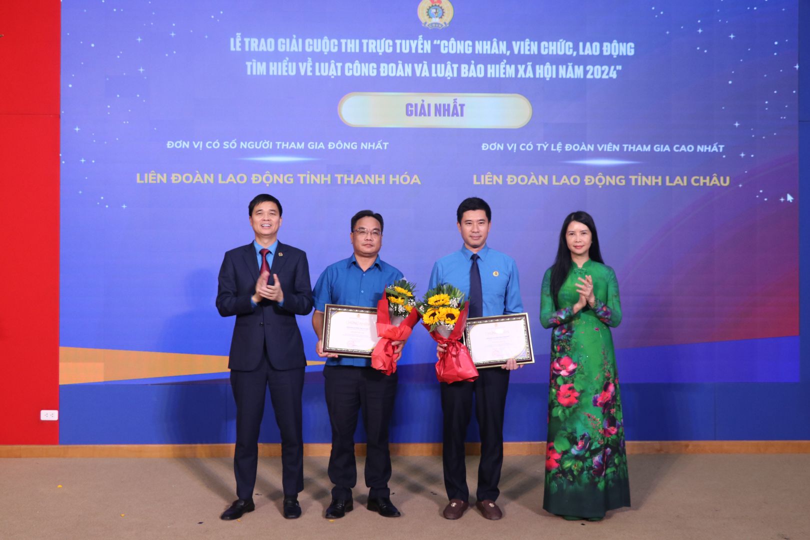 Bên cạnh đó, 02 giải Nhất tập thể được trao cho LĐLĐ tỉnh Thanh Hóa - đơn vị có số người tham gia đông nhất và LĐLĐ tỉnh Lai Châu - đơn vị có tỷ lệ đoàn viên tham gia cao nhất.
