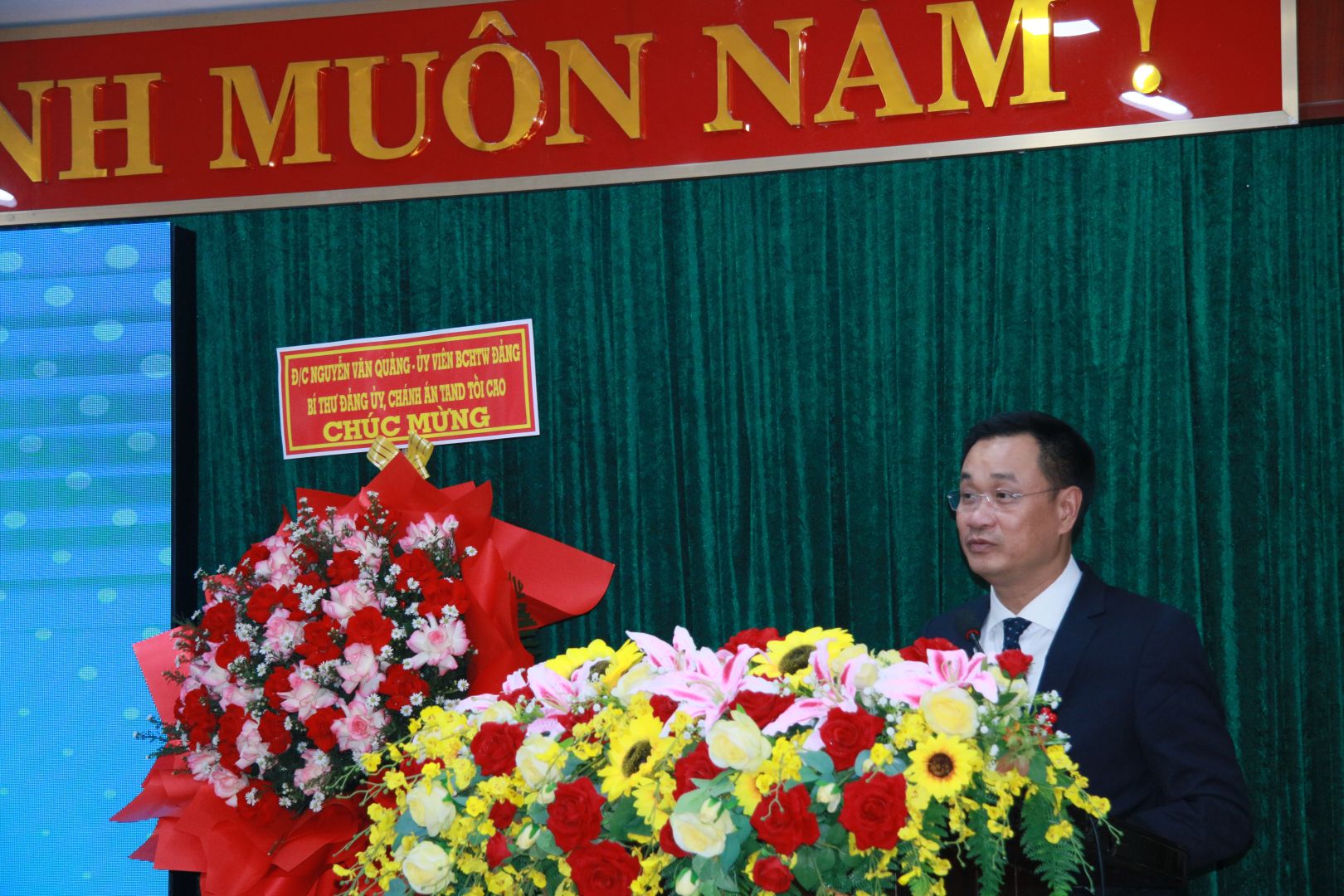 Ủy viên Trung ương Đảng, Bí thư Đảng ủy, Chánh án TANDTC Nguyễn Văn Quảng phát biểu chỉ đạo Hội nghị
