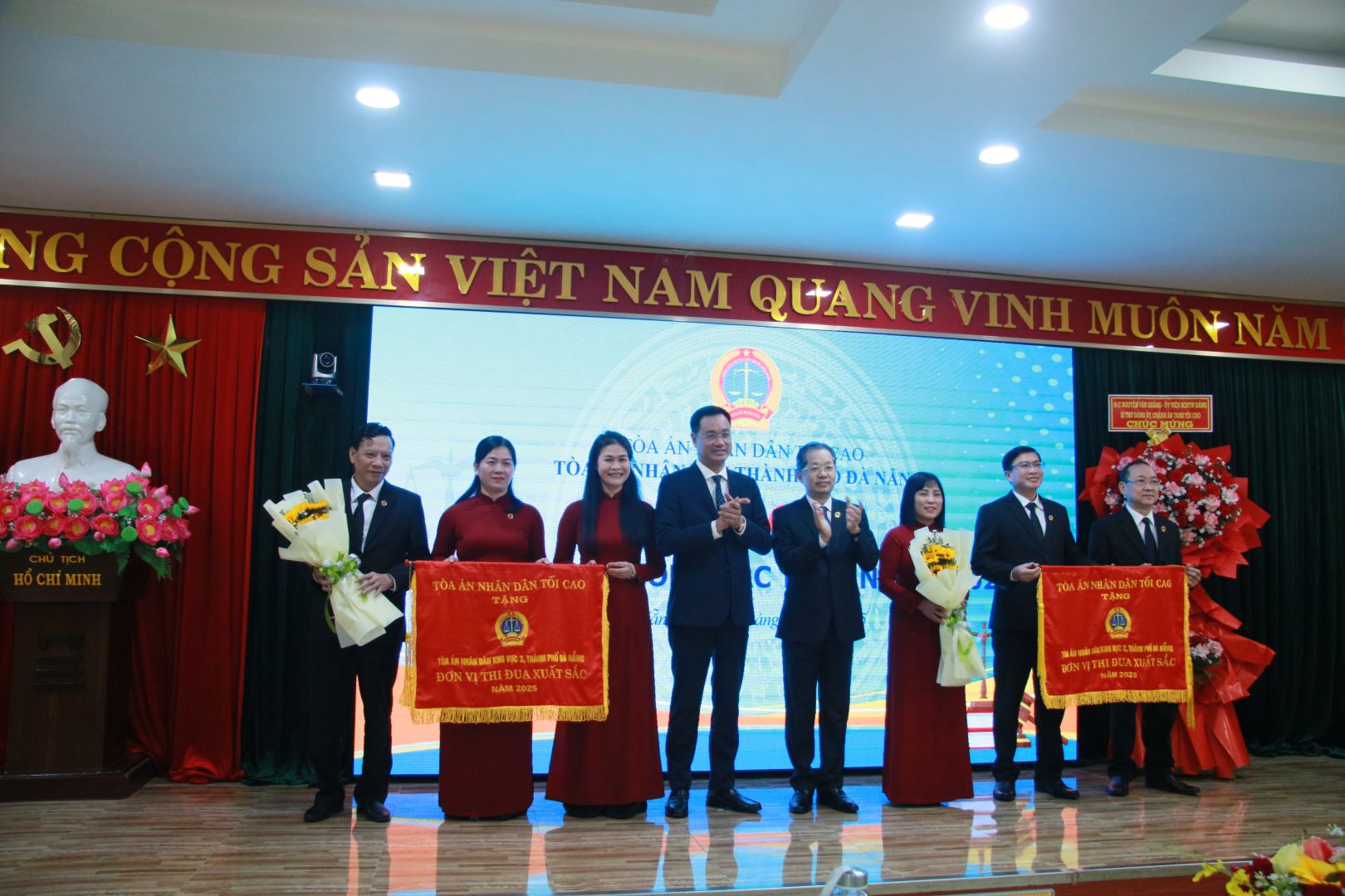 Chánh án TANDTC và Bí thư Thành ủy Đà Nẵng tặng Cờ thi đua cho lãnh đạo TAND khu vực 2 và TAND khu vực 3 thành phố Đà Nẵng