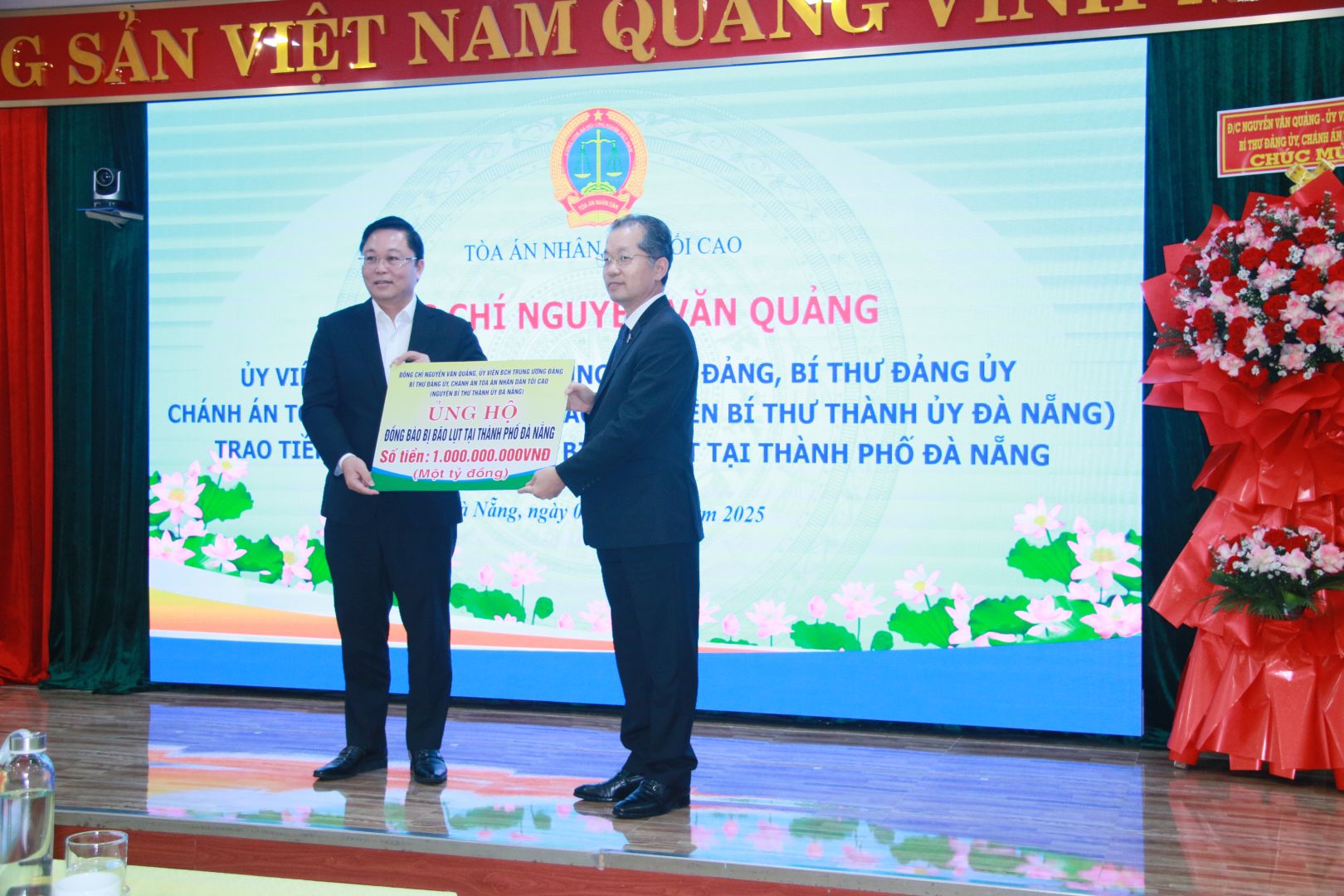Nhân dịp Hội nghị này, Chánh án TANDTC Nguyễn Văn Quảng đã trao số tiền 1 tỷ đồng hỗ trợ đồng bào bị bão lụt tại thành phố Đà Nẵng và 3 hệ thống xử lý nước sinh hoạt cho 3 TAND khu vực: TAND khu vực 6, TAND khu vực 10 và TAND khu vực 11.