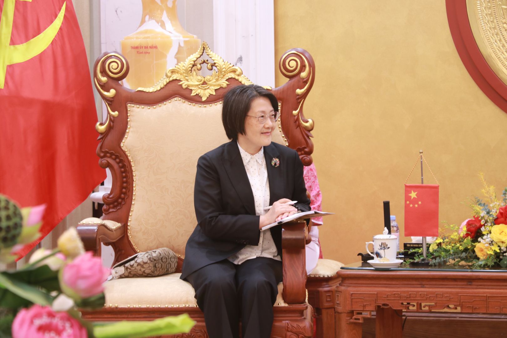 Bà Cao Jie, Phó Chánh án thường trực TAND cấp cao Thượng Hải (Trung Quốc) trao đổi tại buổi làm việc
