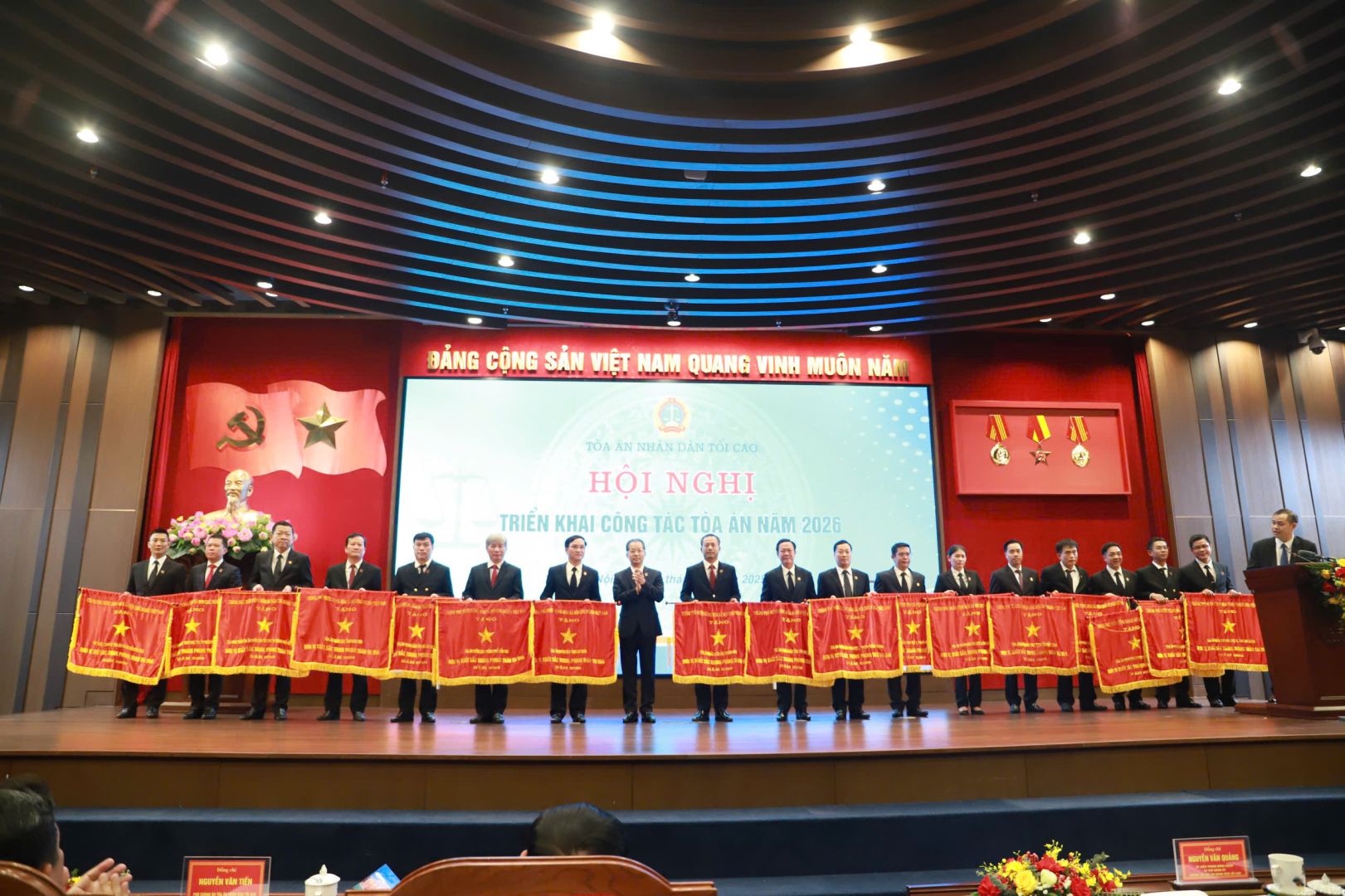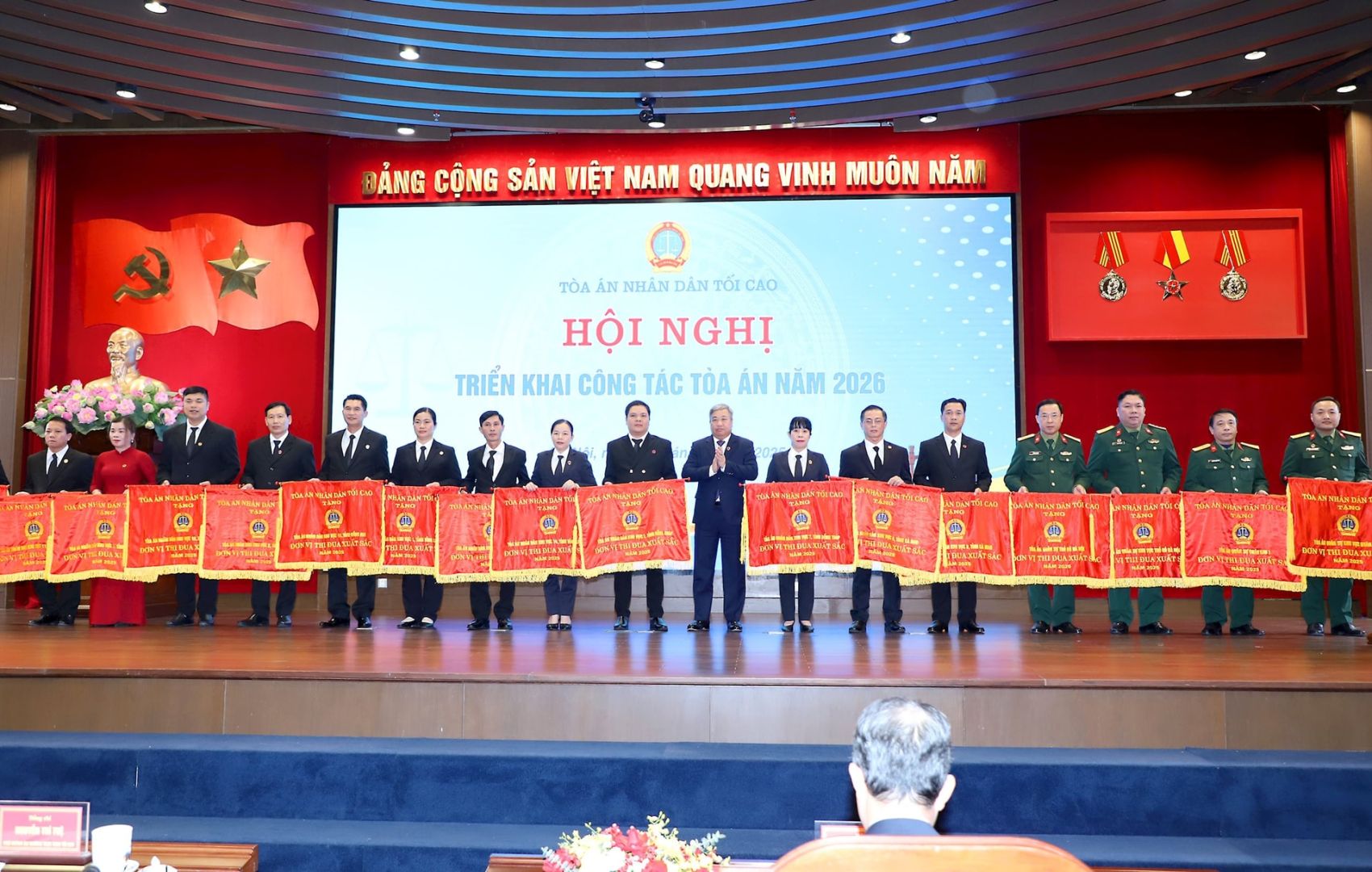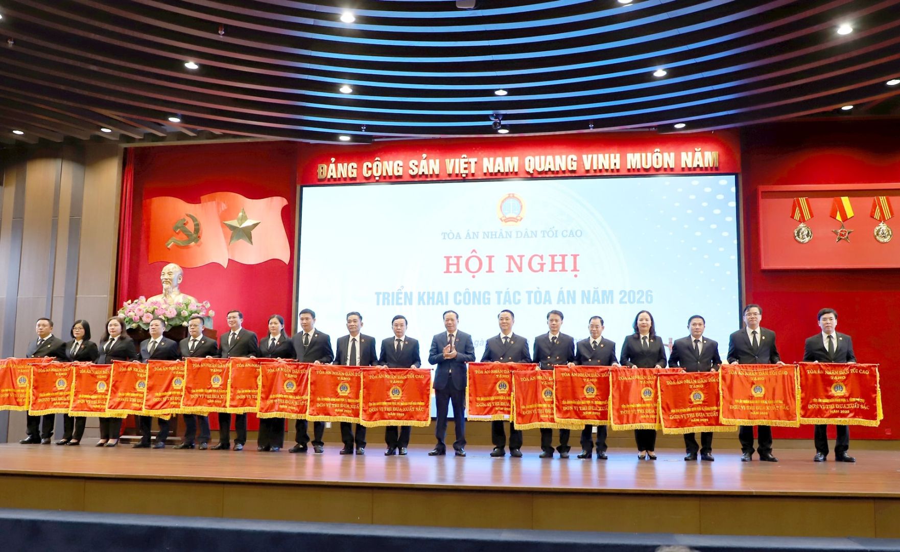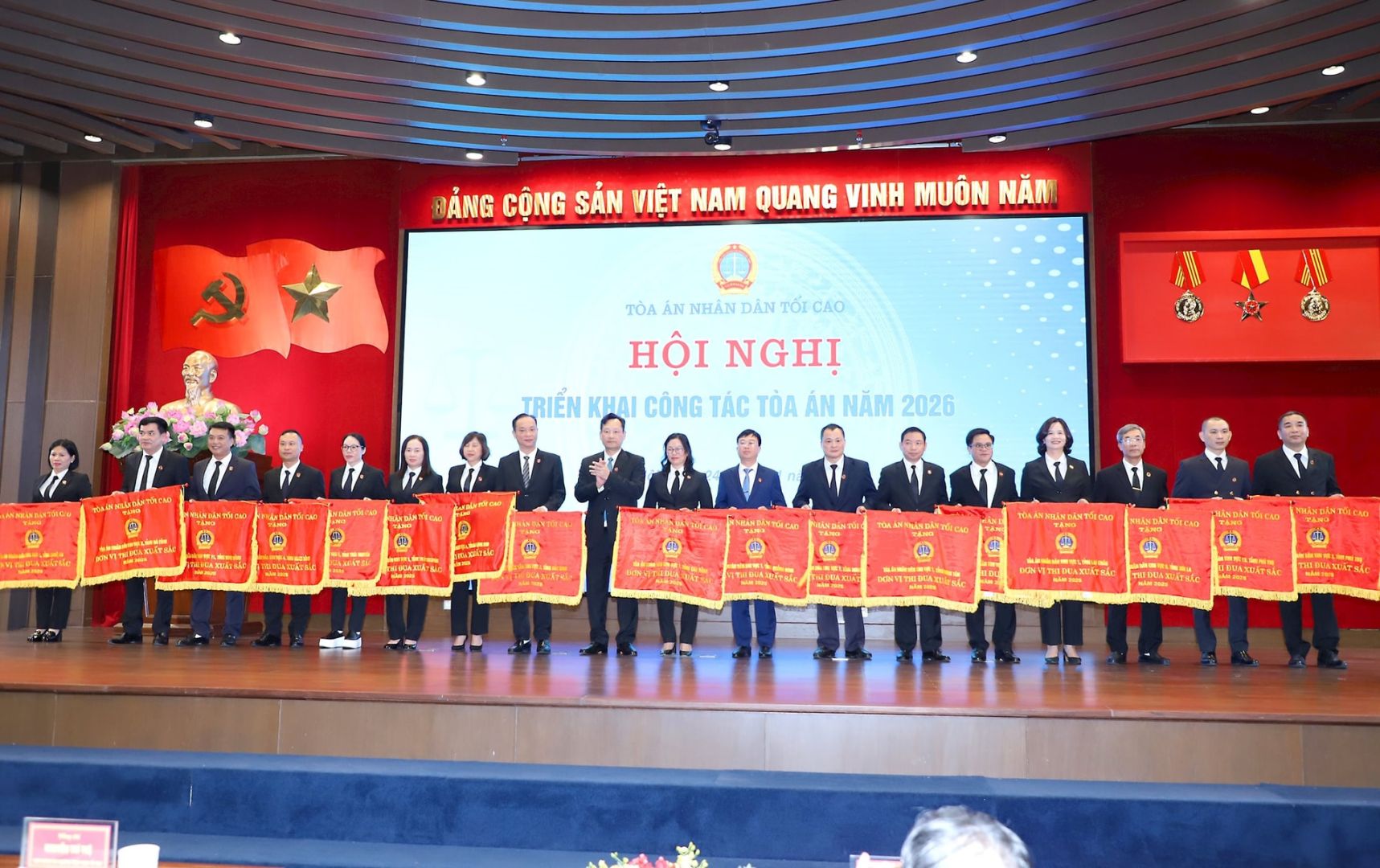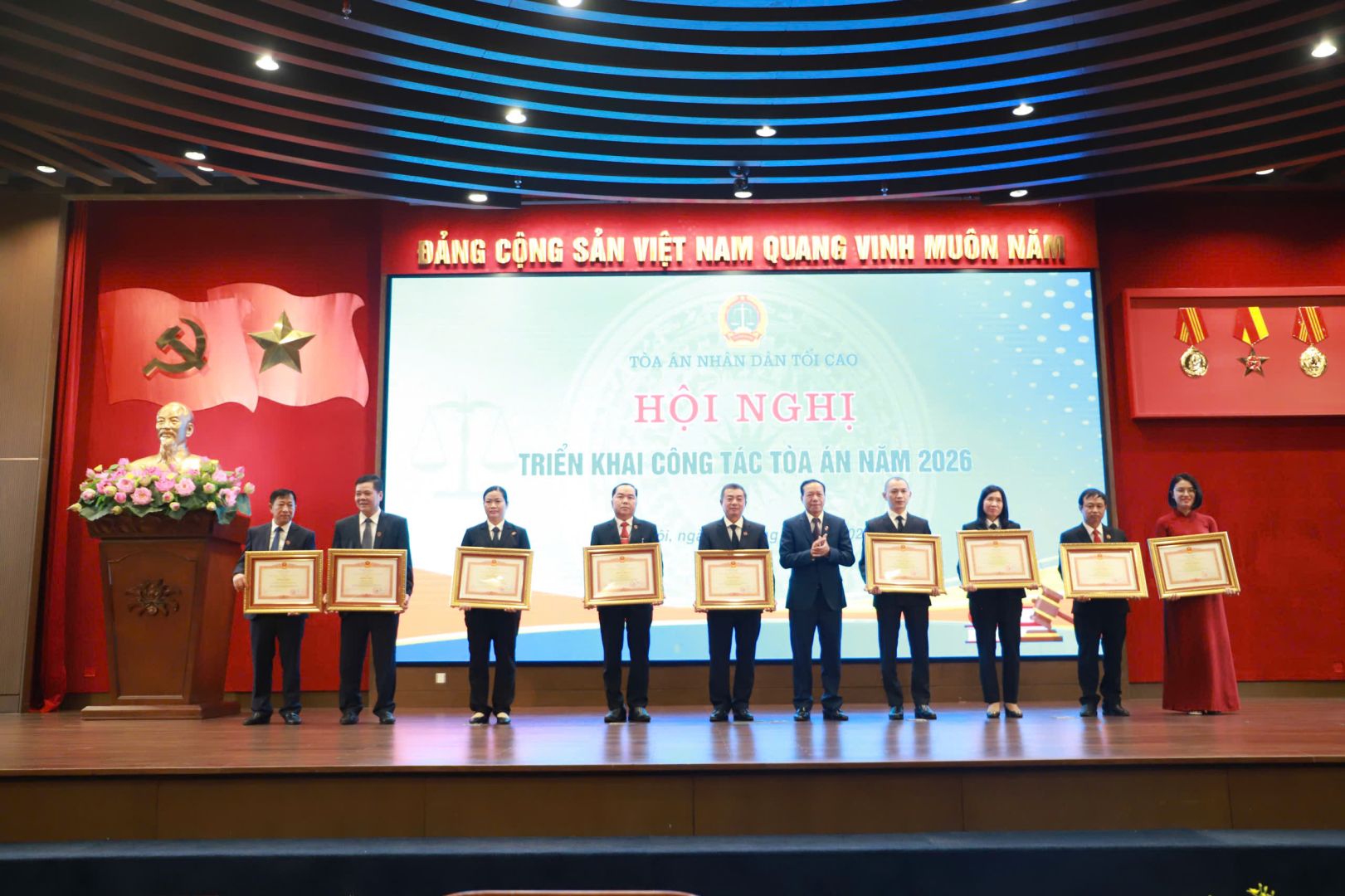Tại Hội nghị triển khai công tác tòa án năm 2026, nhiều tập thể, cá nhân trong Tòa án nhân dân đã vinh dự được tặng các danh hiệu thi đua, hình thức khen thưởng cao của Nhà nước và của Chánh án TAND tối cao vì đã có thành tích xuất sắc trong công tác Tòa án trong giai đoạn 2020-2024 và năm 2025