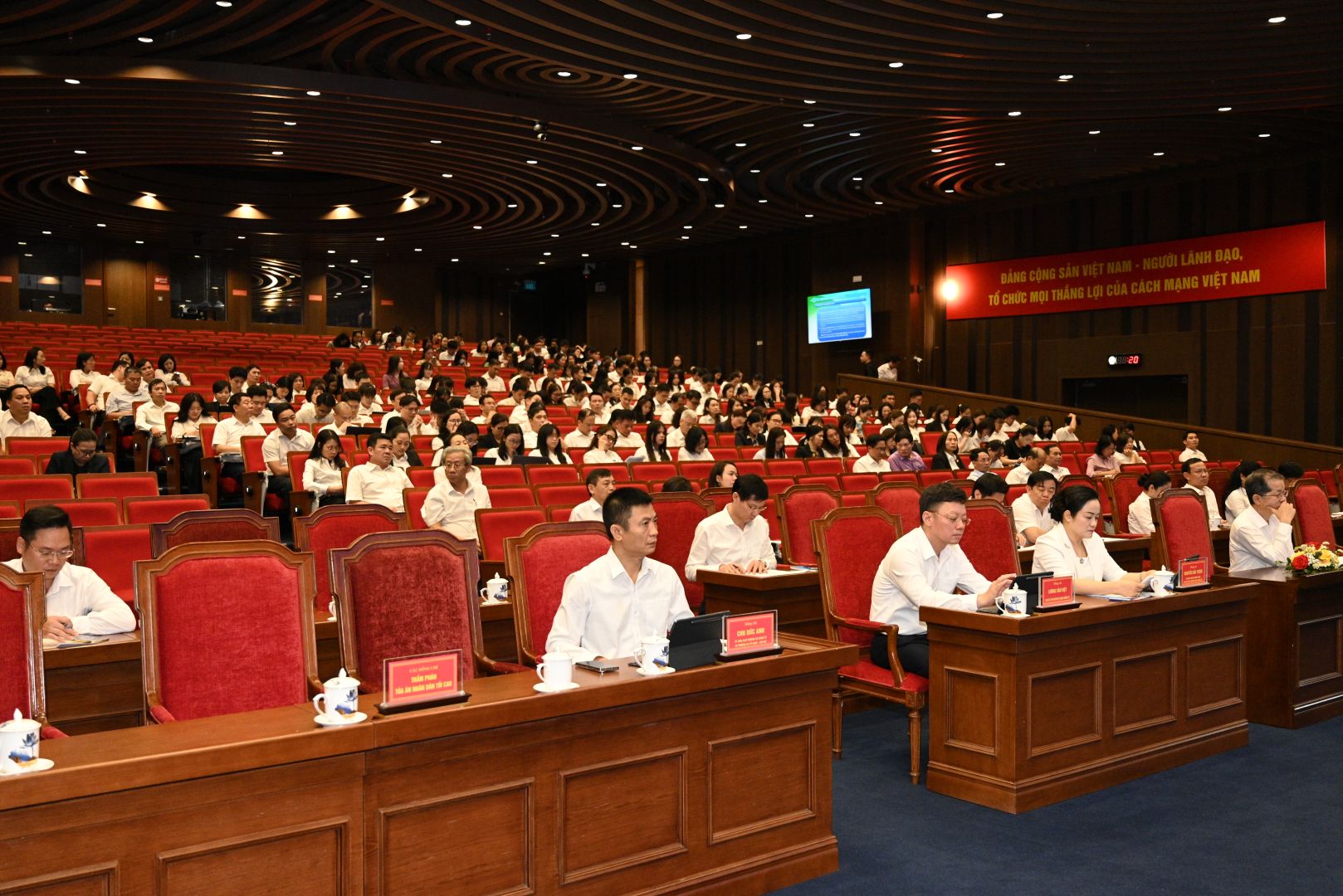 Hội nghị do đồng chí Nguyễn Văn Quảng, Bí thư Trung ương Đảng, Bí thư Đảng ủy, Chánh án Tòa án nhân dân tối cao chủ trì. Tham dự tại điểm cầu trung tâm có các đồng chí Phó Chánh án Tòa án nhân dân tối cao: Phạm Quốc Hưng, Lê Tiến; các thành viên Hội đồng Thẩm phán Tòa án nhân dân tối cao; cùng các đồng chí lãnh đạo, Thẩm phán, Thẩm tra viên, Thư ký Tòa án và công chức làm công nghệ thông tin thuộc các đơn vị của Tòa án nhân dân tối cao.