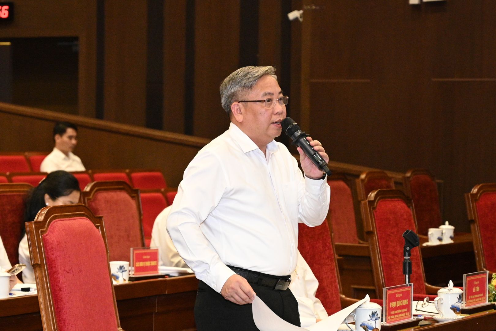 Đồng chí Phạm Quốc Hưng, Phó Chánh án Tòa án nhân dân tối cao chủ trì, điều hành phần trao đổi, thảo luận