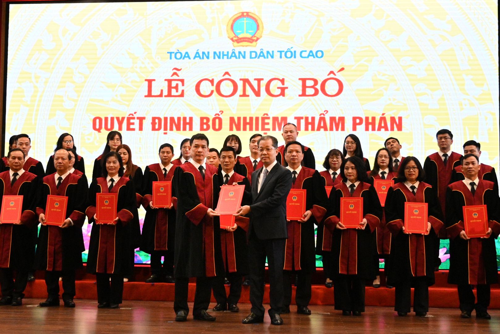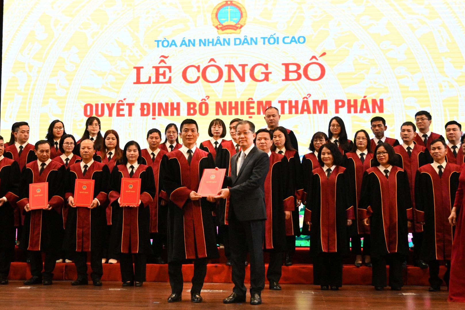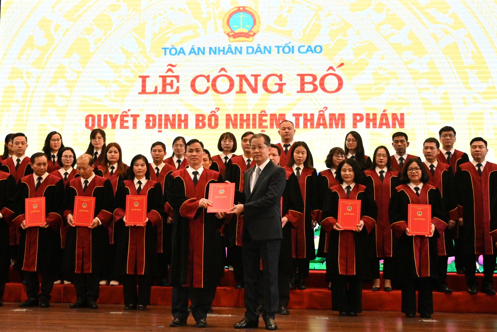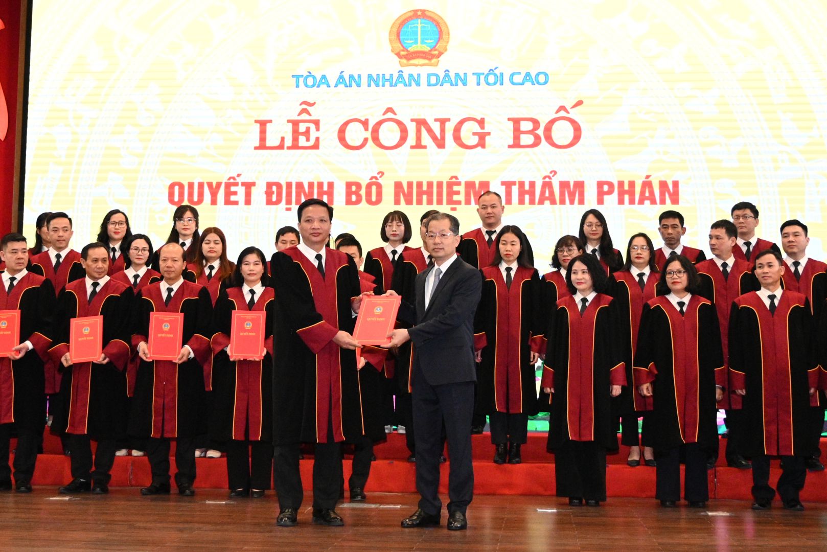 Sáng ngày 10/02, tại Hà Nội, Tòa án nhân dân tối cao tổ chức Lễ công bố Quyết định của Chủ tịch nước về việc bổ nhiệm Thẩm phán Tòa án nhân dân đối với 39 đồng chí là Thẩm tra viên cao cấp, Vụ trưởng, Phó Vụ trưởng, Thẩm tra viên chính và các chức danh có liên quan đang công tác tại các đơn vị thuộc Tòa án nhân dân tối cao.