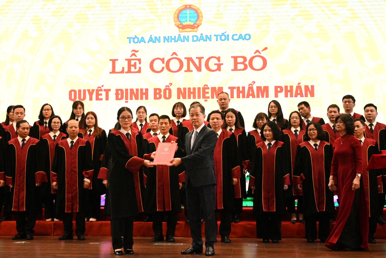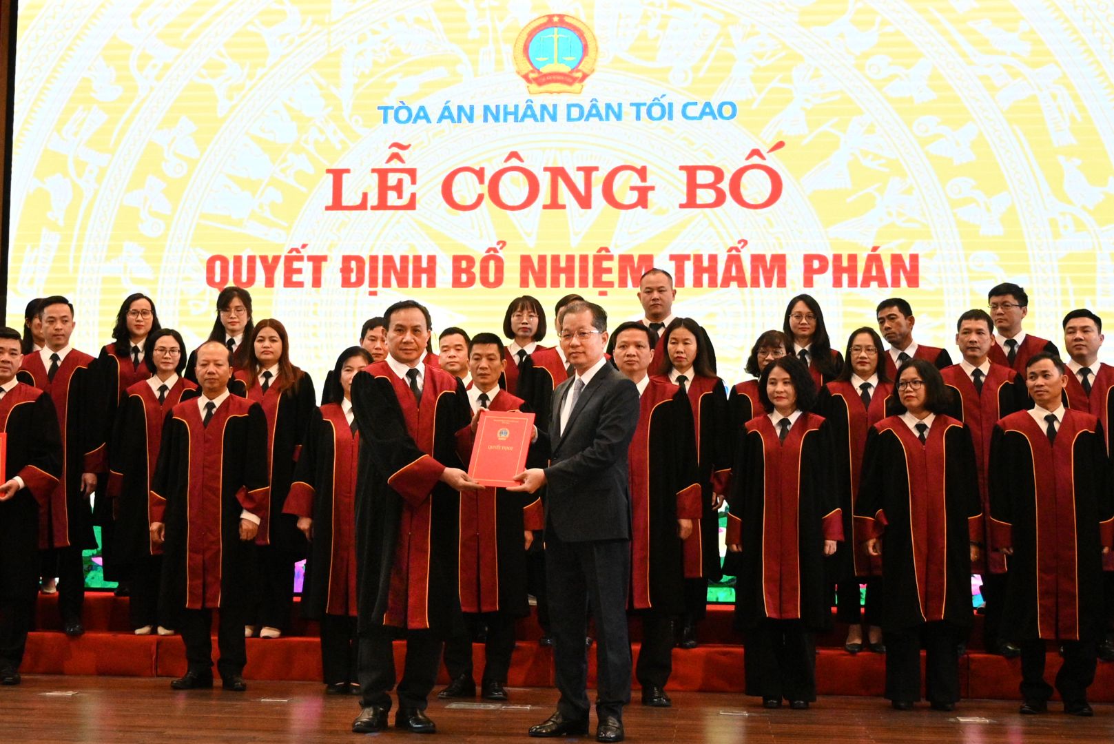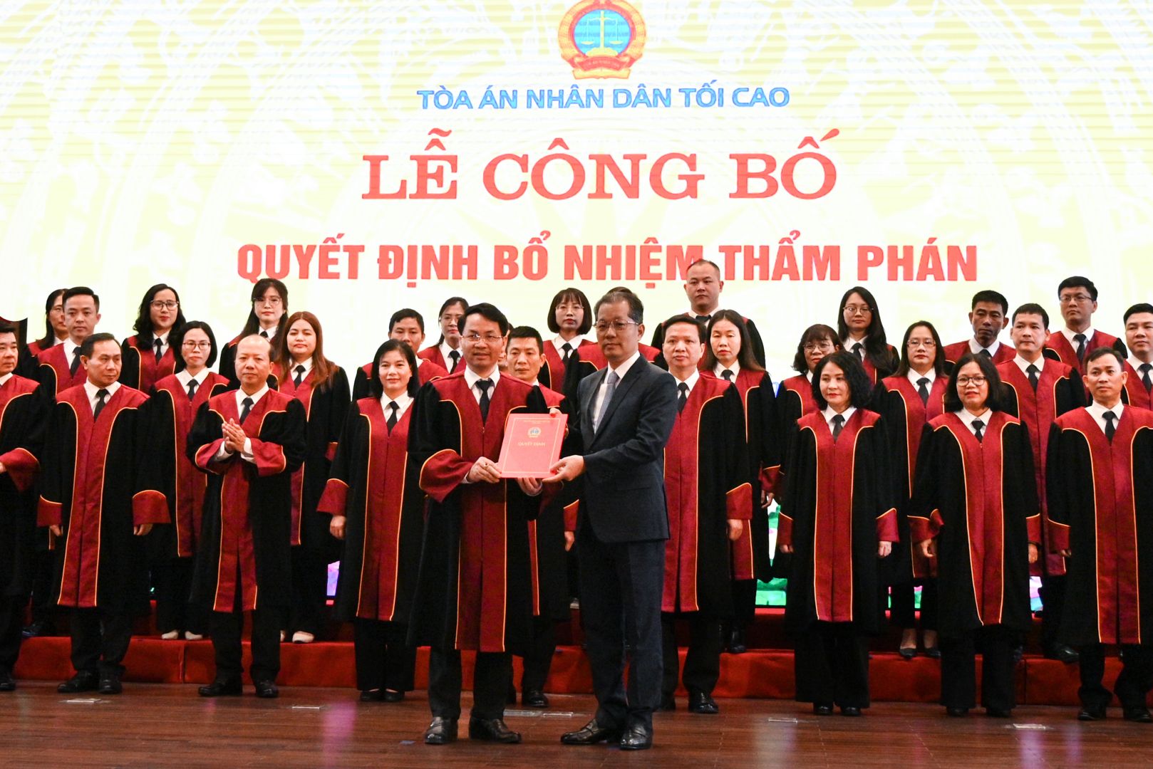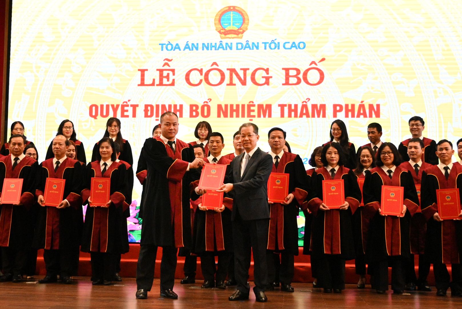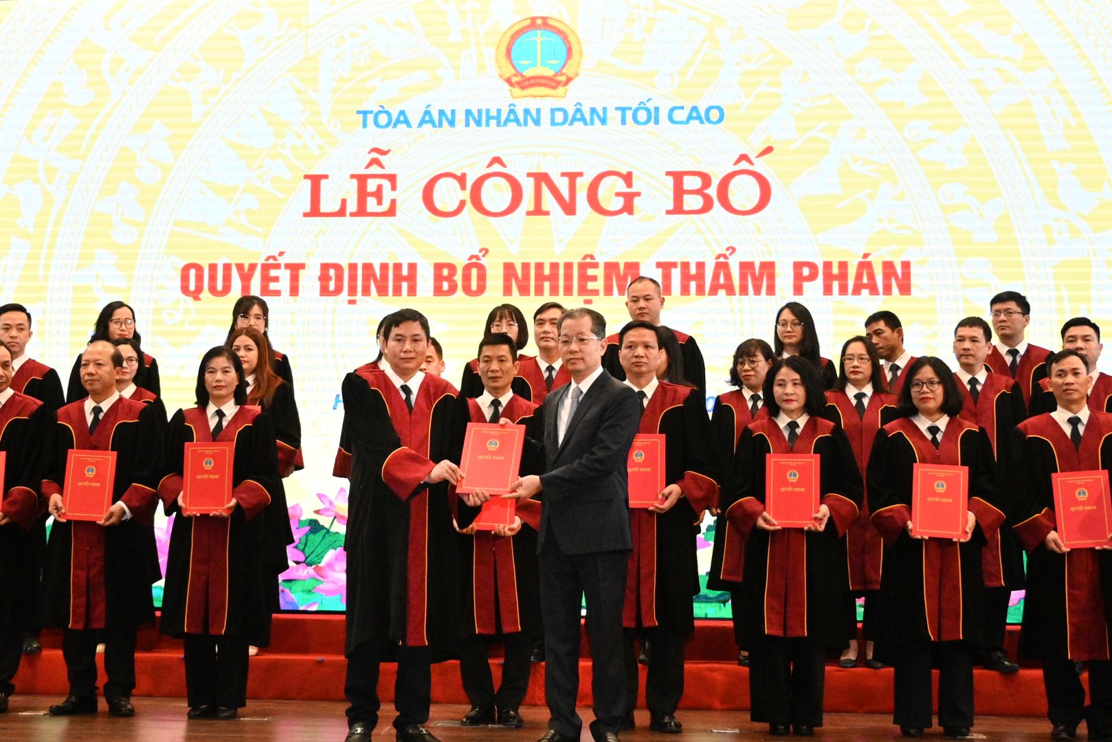 Sáng ngày 10/02, tại Hà Nội, Tòa án nhân dân tối cao tổ chức Lễ công bố Quyết định của Chủ tịch nước về việc bổ nhiệm Thẩm phán Tòa án nhân dân đối với 39 đồng chí là Thẩm tra viên cao cấp, Vụ trưởng, Phó Vụ trưởng, Thẩm tra viên chính và các chức danh có liên quan đang công tác tại các đơn vị thuộc Tòa án nhân dân tối cao.
