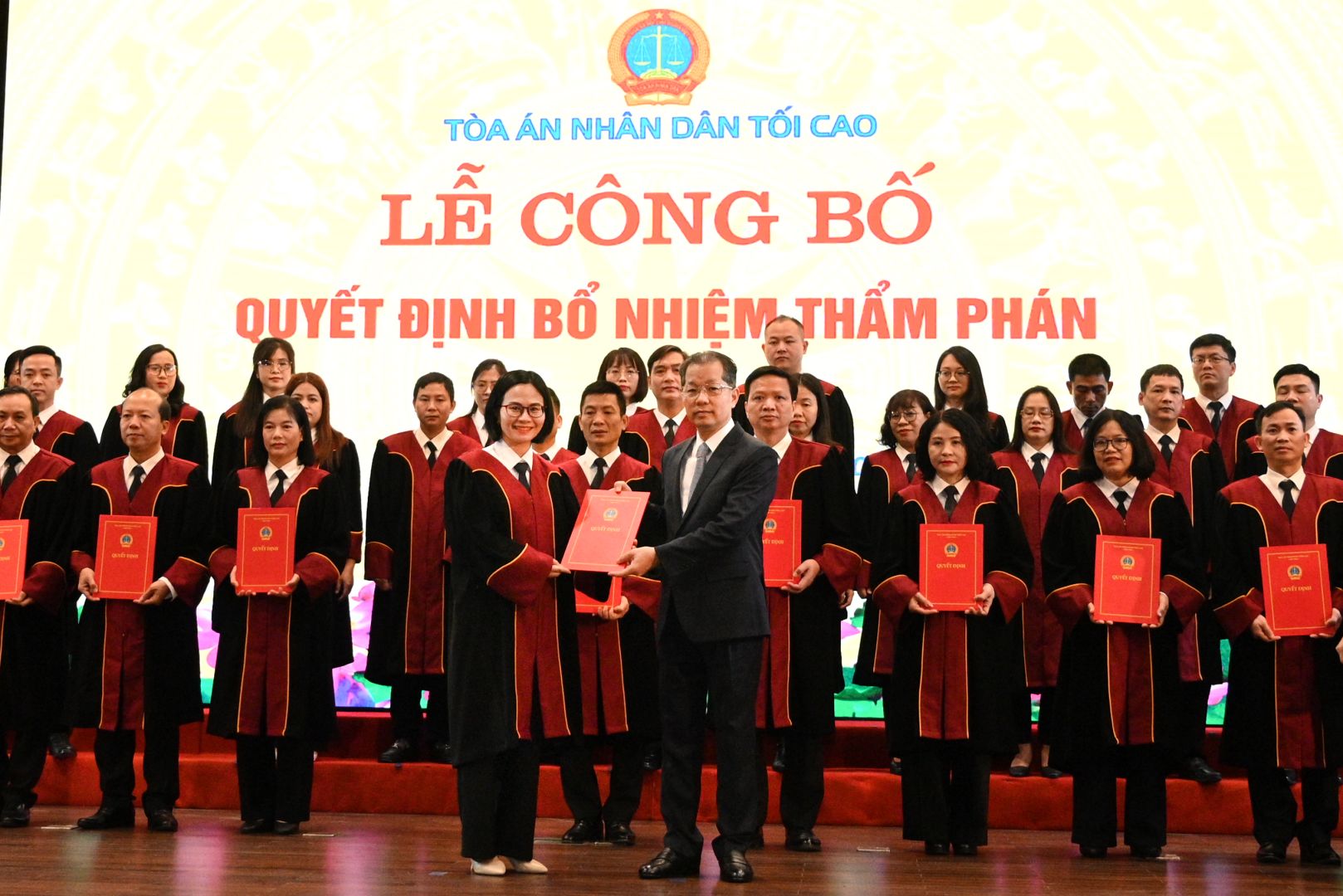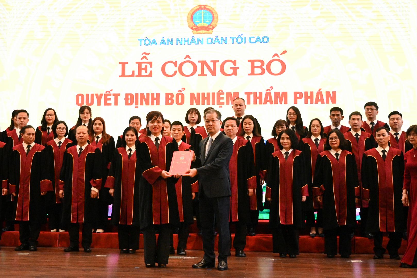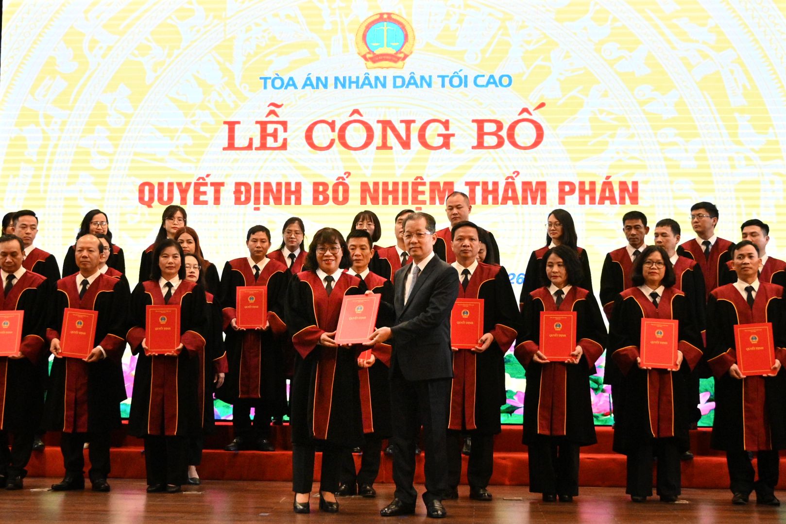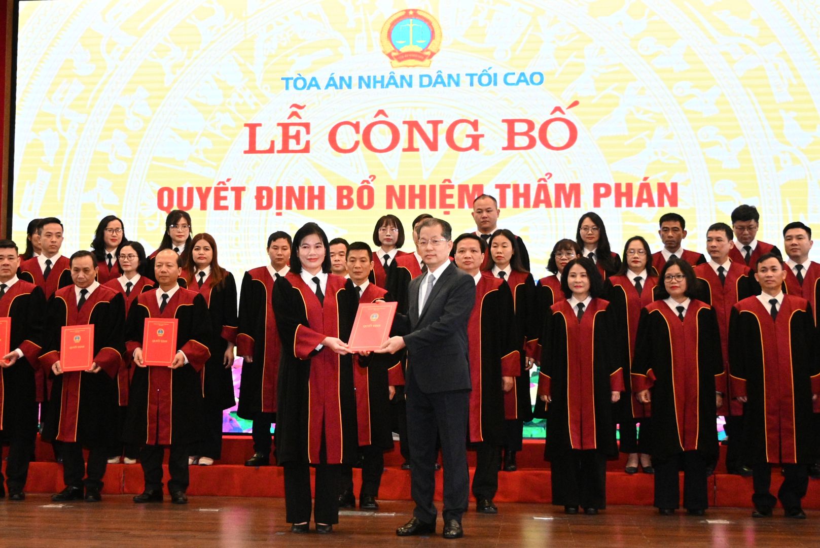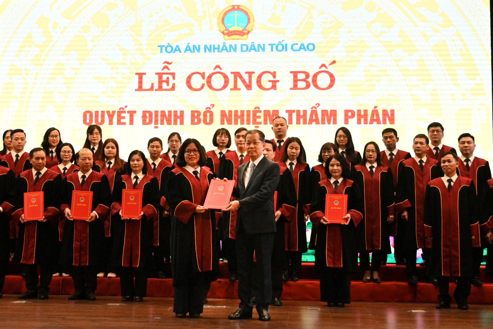 Sáng ngày 10/02, tại Hà Nội, Tòa án nhân dân tối cao tổ chức Lễ công bố Quyết định của Chủ tịch nước về việc bổ nhiệm Thẩm phán Tòa án nhân dân đối với 39 đồng chí là Thẩm tra viên cao cấp, Vụ trưởng, Phó Vụ trưởng, Thẩm tra viên chính và các chức danh có liên quan đang công tác tại các đơn vị thuộc Tòa án nhân dân tối cao.