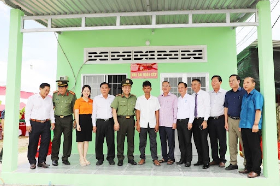 Lãnh đạo Bộ Công an, tỉnh Bạc Liêu và đại diện Tập đoàn T&T Group, Ngân hàng SHB dự khánh thành nhà của hộ dân được hỗ trợ