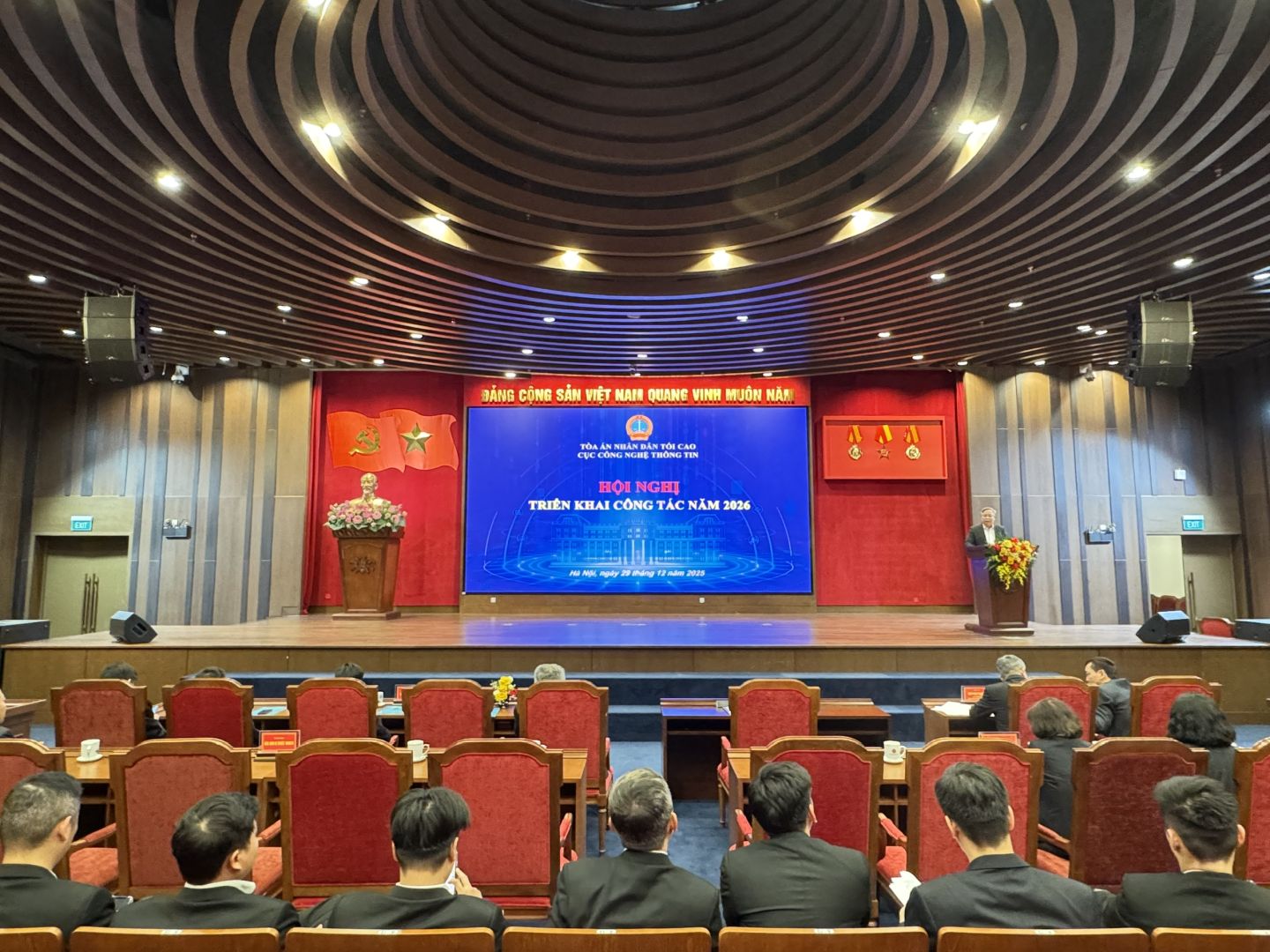 Ngày 29/12/2025, tại Hà Nội, Cục Công nghệ thông tin Tòa án nhân dân tối cao (TANDTC) tổ chức Hội nghị báo cáo tình hình thực hiện nhiệm vụ năm 2025 và triển khai công tác năm 2026. Kết quả công tác năm 2025 đã thể hiện rõ quyết tâm chính trị, tinh thần đổi mới, cách làm bài bản và sự nỗ lực vượt bậc của tập thể Cục Công nghệ thông tin TANDTC.